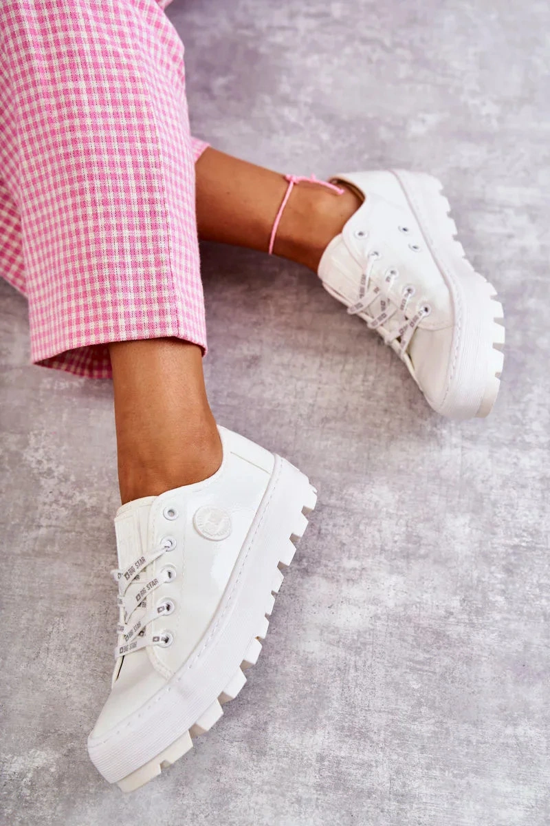 Úžasné tenisky od značky Big Star! Moderní design a podrážka s vysokým dezénem odlišuje tento model od ostatních! Na boku svršku je gumový emblém. Tyto tenisky mají navíc logované tkaničky. Protiskluzová podrážka zajistí stabilitu. Tento model má také vyztuženou patu. Rozhodně byste je měli mít ve svém šatníku! Při výběru velikosti použijte tabulku velikostí.