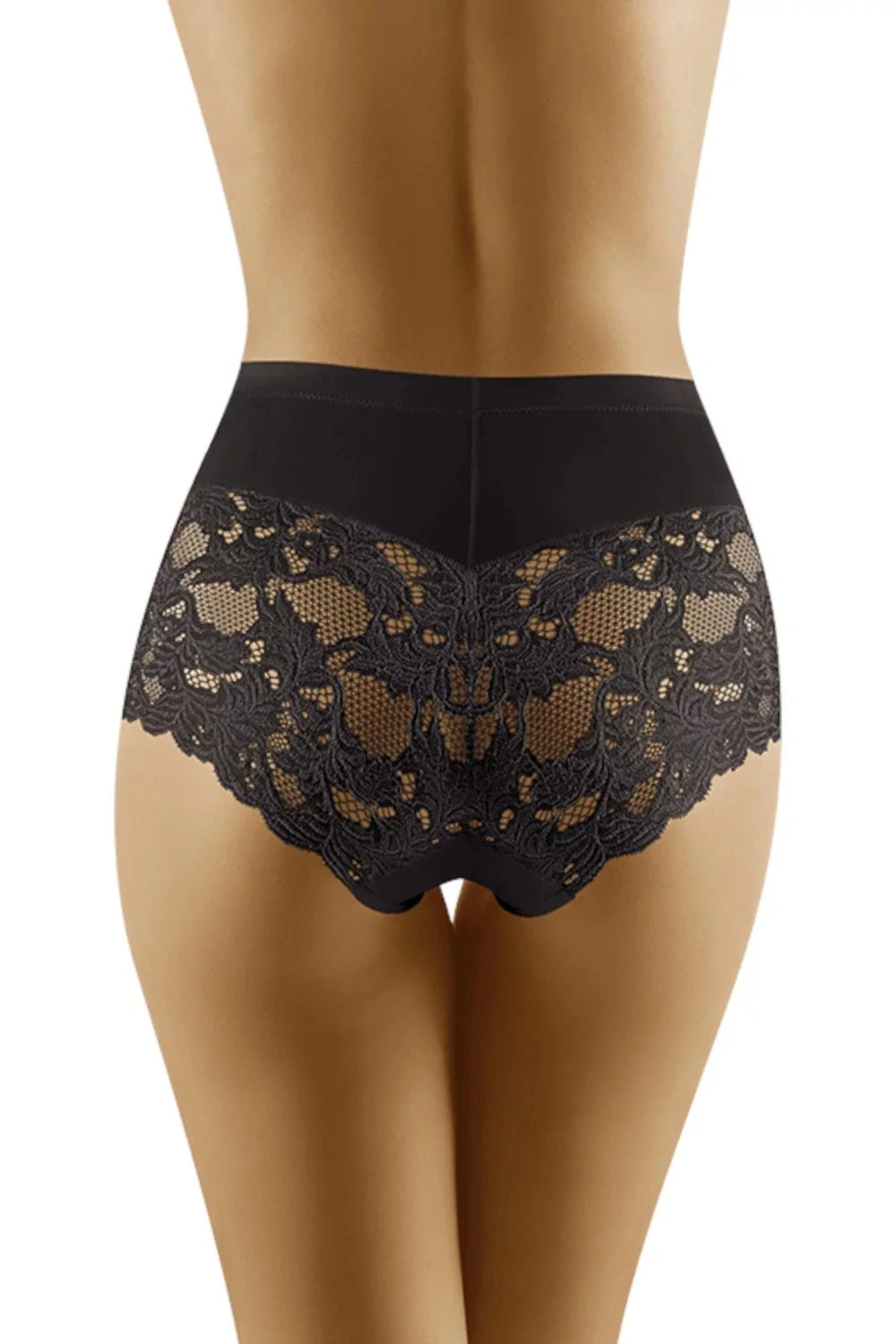 Dámské stahovací kalhotky Slimea Wolbar - vyššího střihu - s plochými švy, díky kterým jsou ideální pod oblečení - na bocích a v zadní části jsou zdobené krajkou s květinovým motivem - velmi silně stahují boky a břicho
