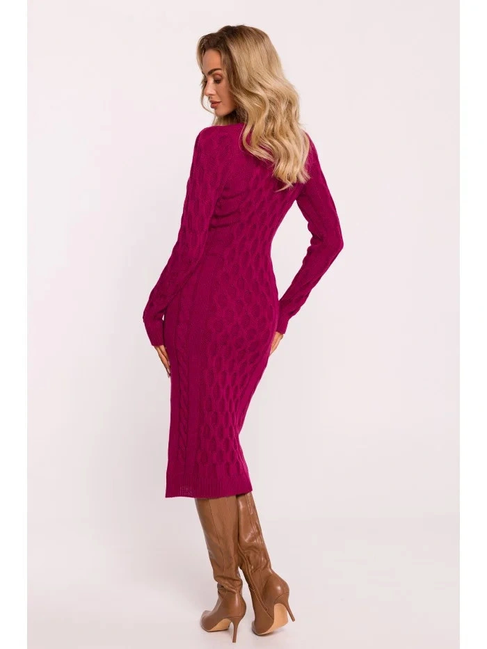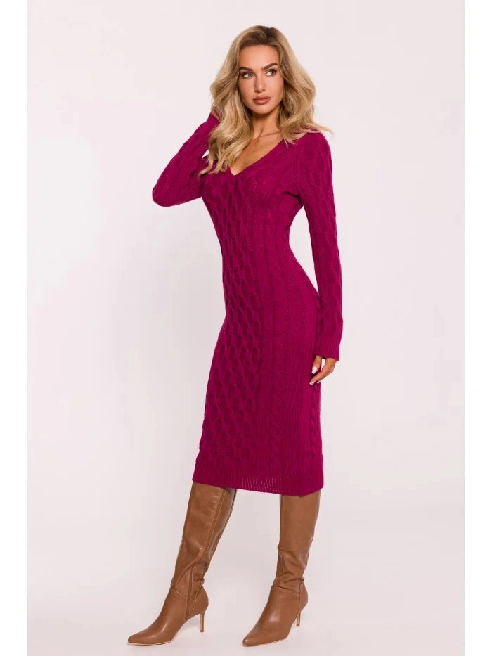 INFORMACE O PRODUKTU: kabelový úplet svetrové šaty střední délky vypasovaný střih přetažený přes hlavu výstřih ve tvaru V naše modelka je vysoká 171 cm a nosí velikost S navrženo a vyrobeno v Polsku