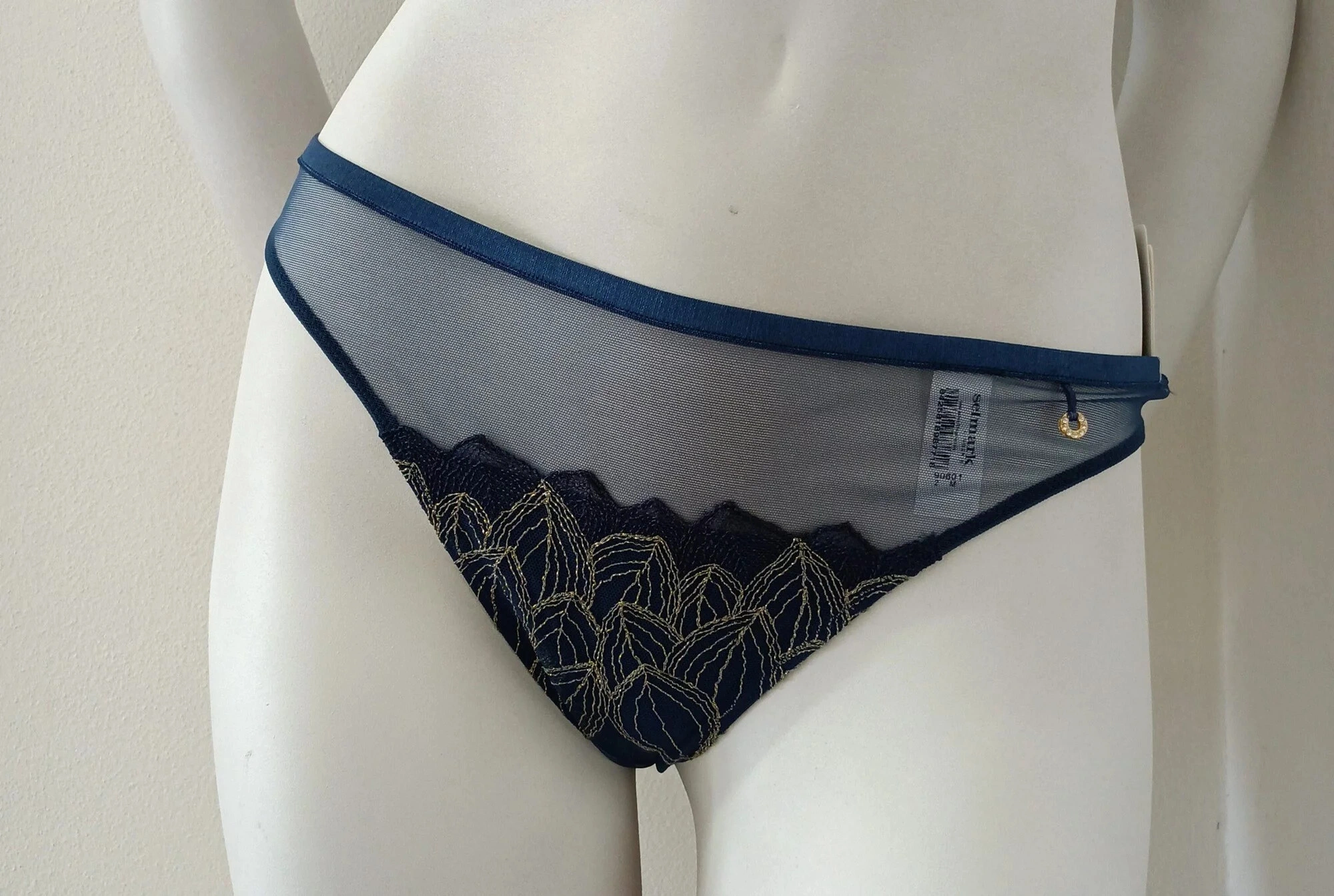 Vepředu průhledný tyl, ve spodní části nádherná krajka prošívaná zlatou nití.