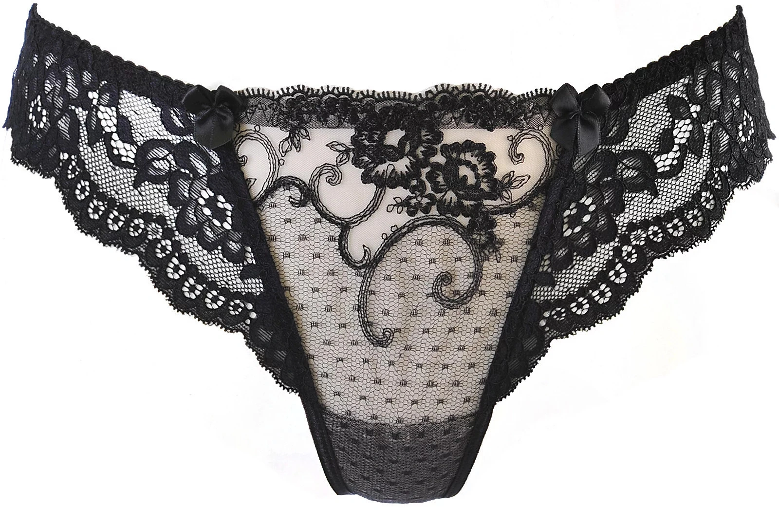 Černá tanga s krajkovou výšivkou vám dodají pocit svůdnosti. Kombinace extravagantní krajky a klasické květinové výšivky je komplet, který se hodí pro každou příležitost, navíc zadní část kalhotek je zakončena příjemnou a jemnou krajkou. Spleť neobvyklých látek a textur speciálně pro vás !