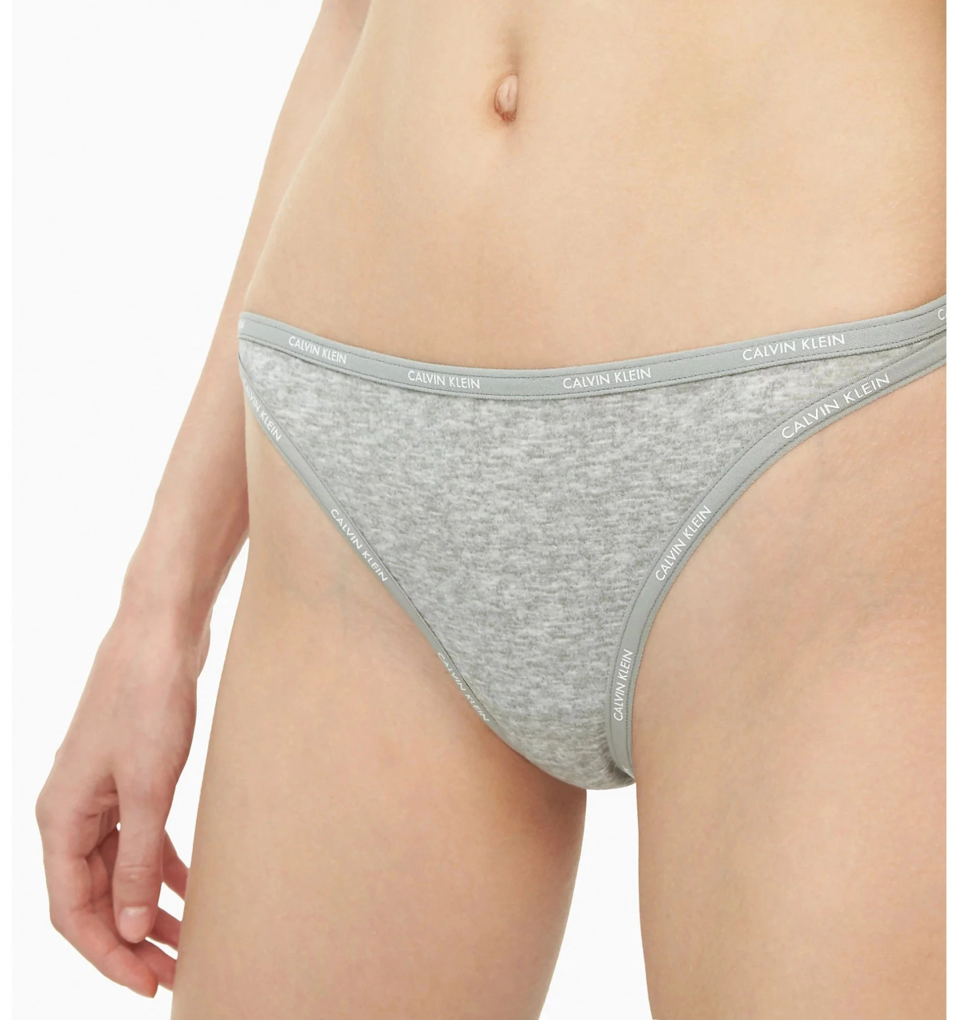 Kalhotky zdobí ikonický nápis Calvin Klein na elastickém pase a logo značky na boku. Díky středně vysokému pásu tanga polichotí každé postavě. Sáhněte po trendy kalhotkách v melírování šedé nebo černé.
