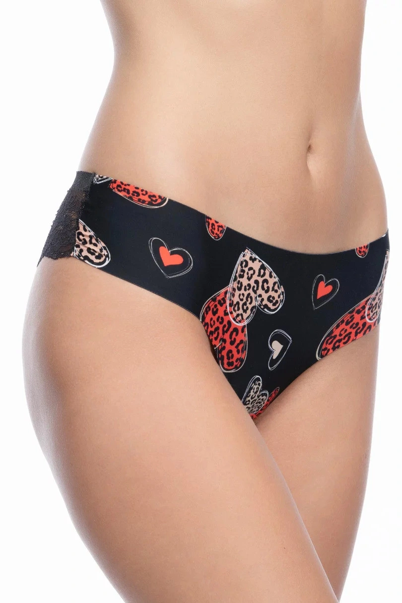 Pro dámy, které se chtějí cítit svůdně, doporučujeme. Brazilky se sexy krajkovými zády, zatímco permanentní potisk v podobě srdíček se dokonale hodí do valentýnské nálady. Složení 89 % polyamid, 10 % elastan, 1 % bavlna.