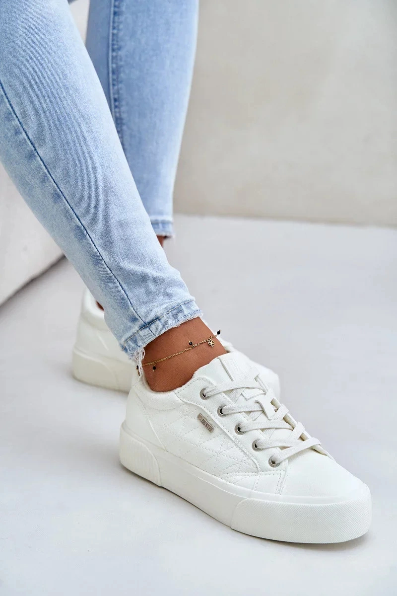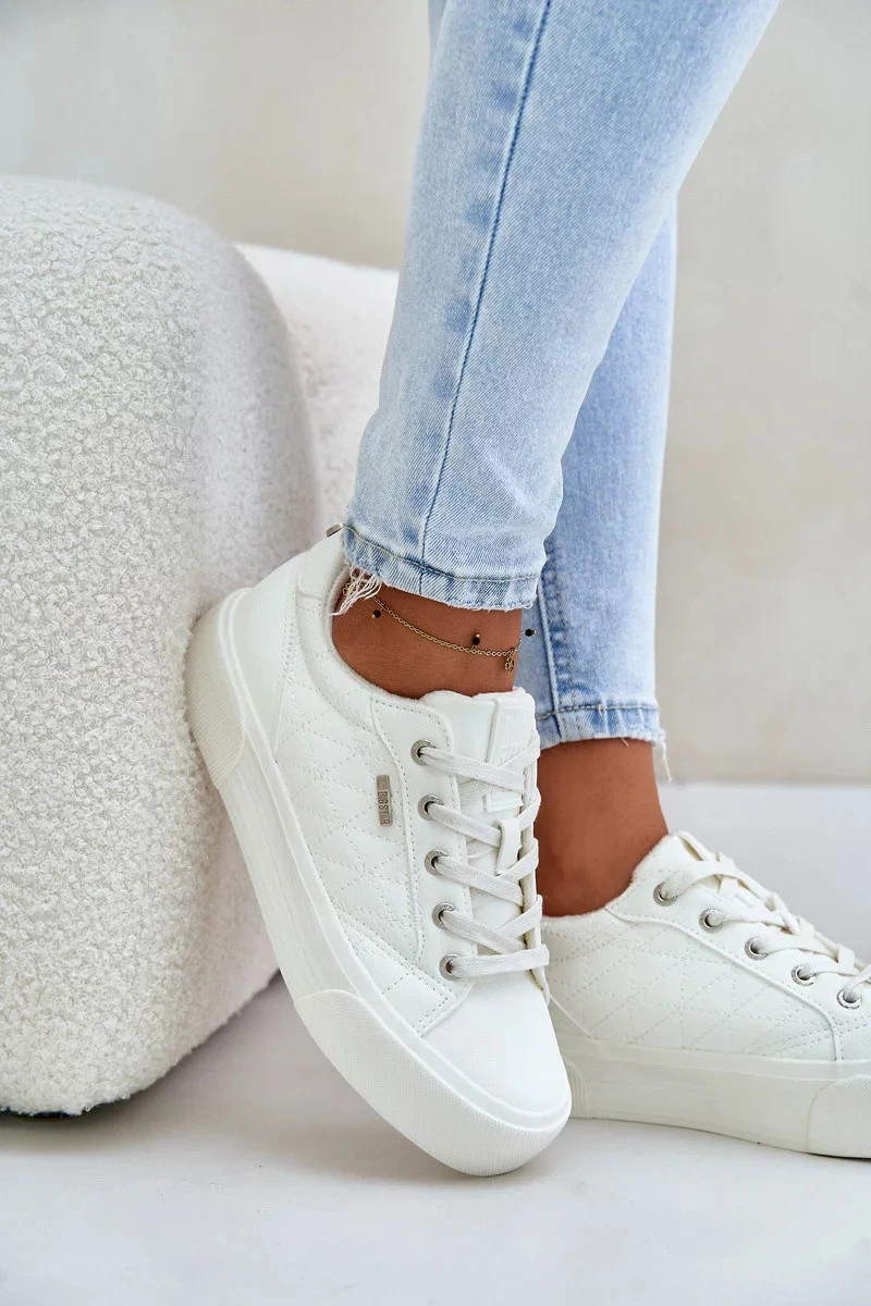 Tenisky Big Star vyrobené z eko kůže jsou stylová a pohodlná obuv na chladnější dny. Zabudované na platformě, dodávají charakter každému outfitu, zároveň zajišťují pohodlí při nošení. Zateplené obuvnickou podšívkou, skvěle se osvědčí v chladnějších dnech, poskytující teplo a pohodlí. Svršek zdobený prošíváním. Zaoblené špičky. Při výběru velikosti se prosím řiďte tabulkou velikostí.
