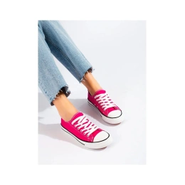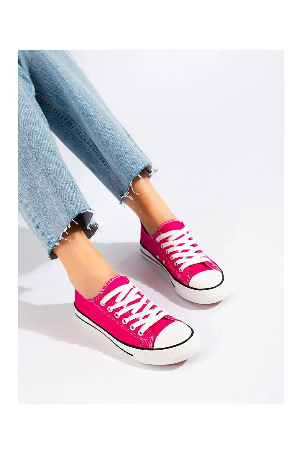 Dámské tenisky - klasické nízké tenisky - krásná, výrazná, růžová barva - 2 cm platforma