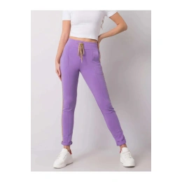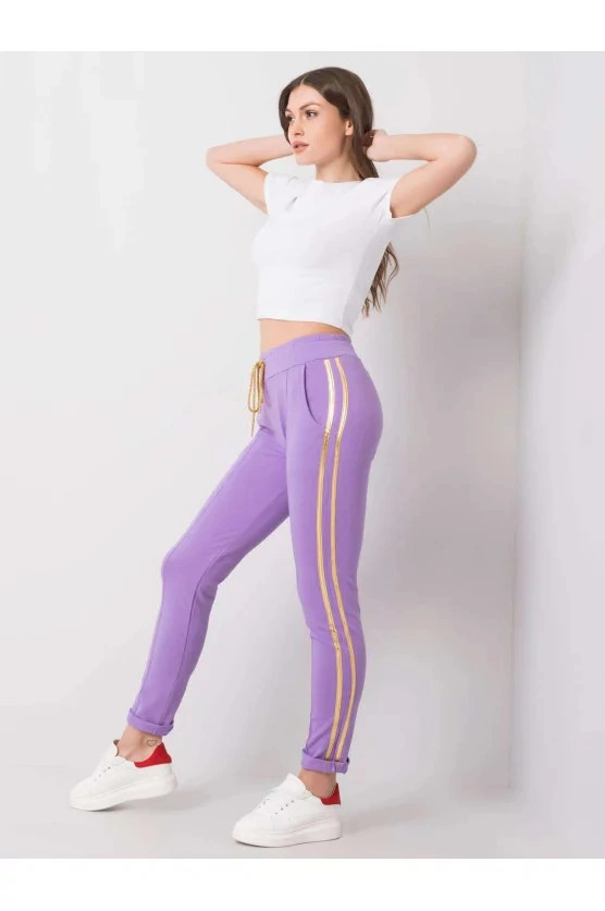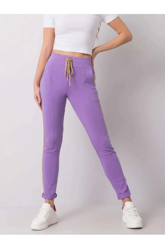 Fialové kalhoty s lemováním.