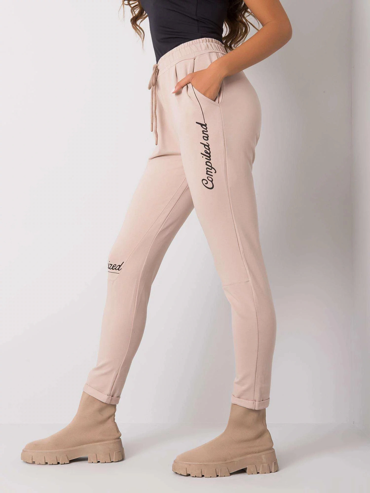Béžové bavlněné tepláky.