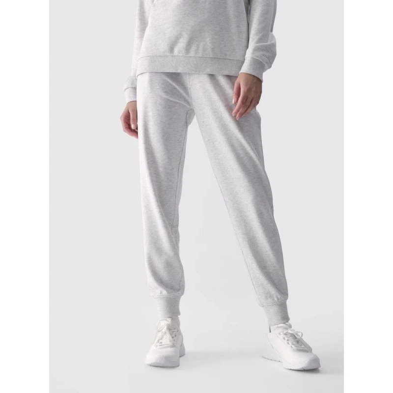 Dámské tepláky 4F jsou vyrobeny ze 79 % z bavlny, takžejsou měkké, odolné a příjemné na dotek. Díky přídavku polyesteru (20 %) si materiál zachovává svůj střih a odolává opotřebení i po mnoho ročních období. Kalhoty nemají podšívku, takže jsou lehčí a vhodné pro teplejší dny. Na bocích jsou 2 otevřené kapsy. Elastický pas s vnitřním nastavením na šňůrku.