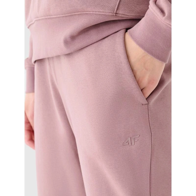 Dámské tepláky 4F jsou vyrobeny z 80 % z bavlny, díky čemuž jsou měkké, odolné a příjemné na dotek. Díky přídavku polyesteru (20 %) si materiál zachovává svůj střih a odolává opotřebení i po mnoho sezón. Počesaná vnitřní strana zaručuje extra hřejivost, takže kalhoty jsou ideální volbou pro chladnější dny.