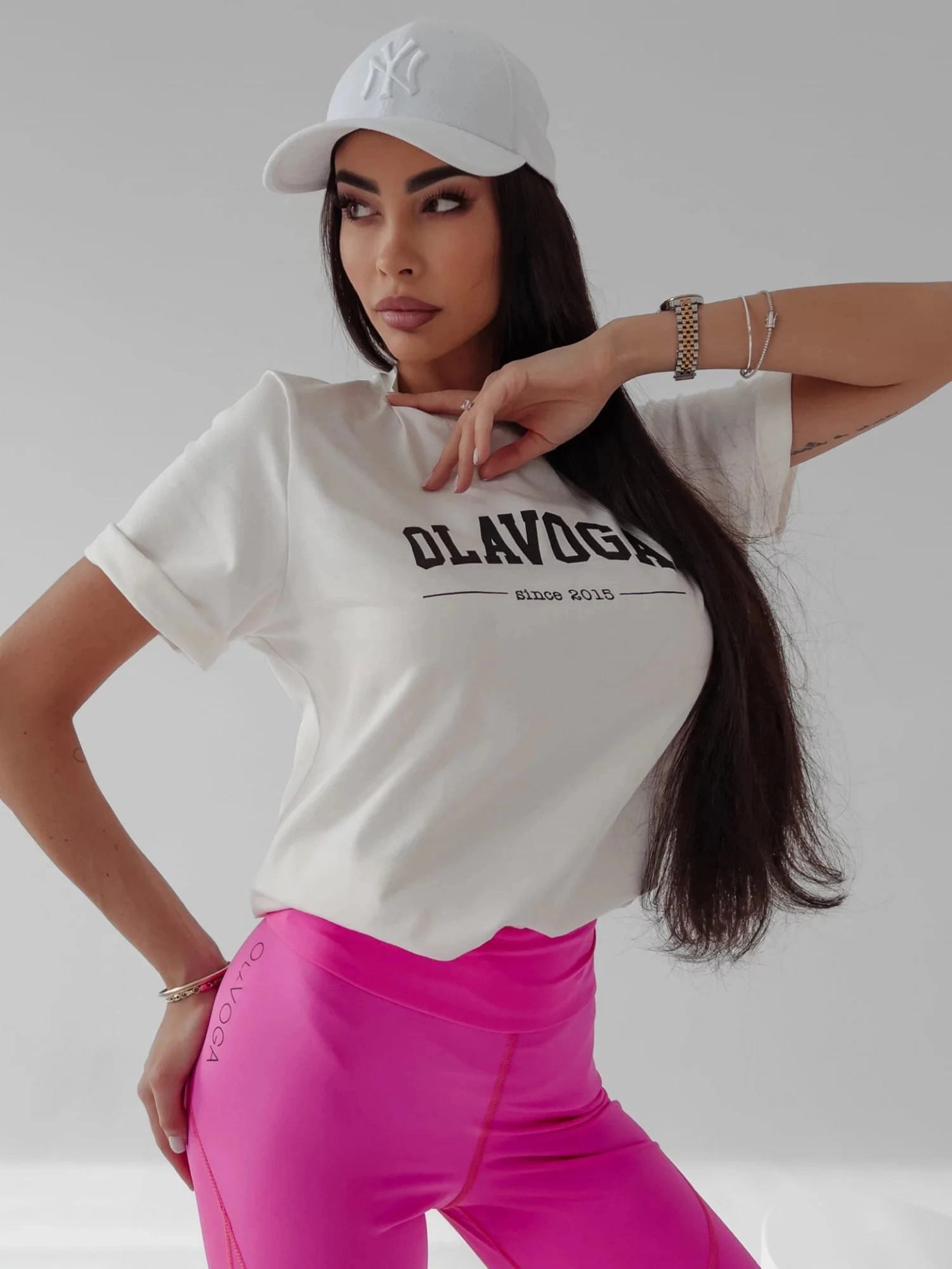 - kulatý výstřih je zvýrazněn kontrastním potiskem OLA VOGA