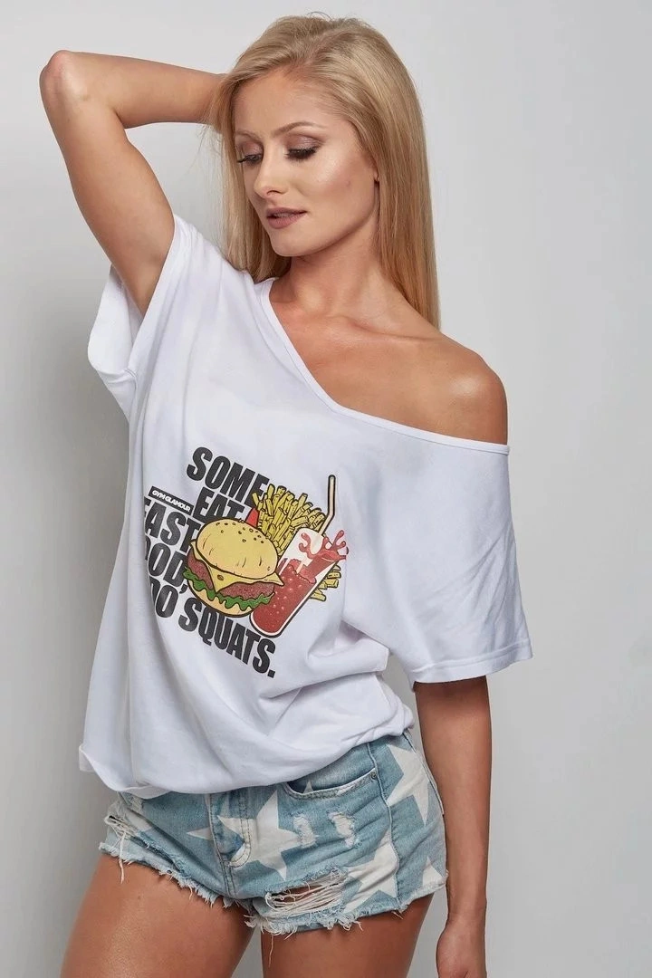Dámské tričko - Fast Food - Gym Glamour bílá s potiskem M/L