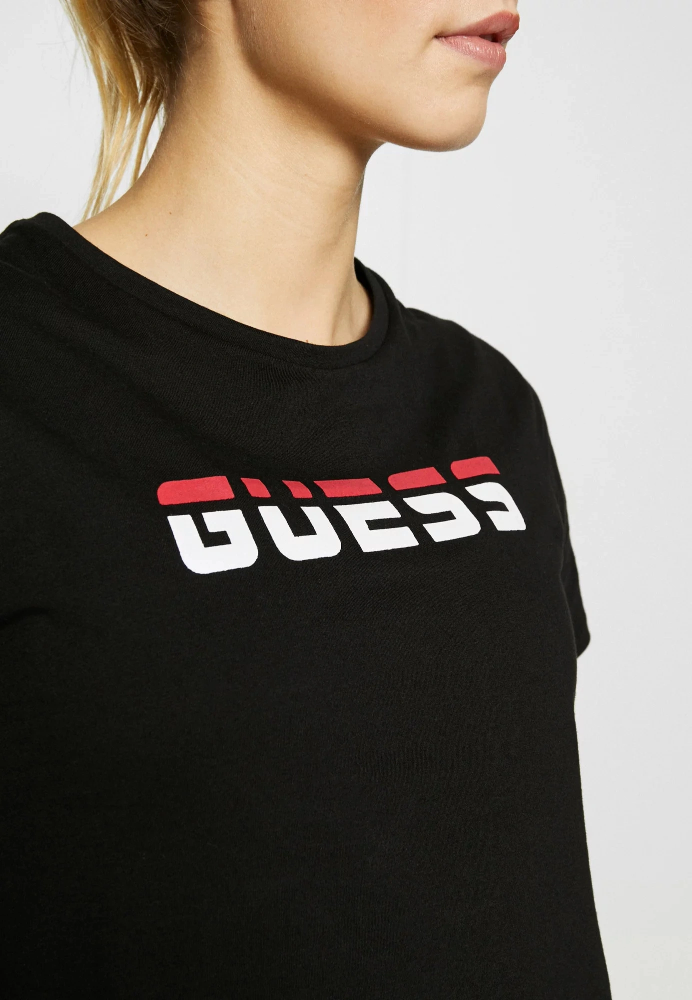 Dámské tričko značky Guess s bílým logem kulatý výstřih příjemný materiál tričko je crop střihu -