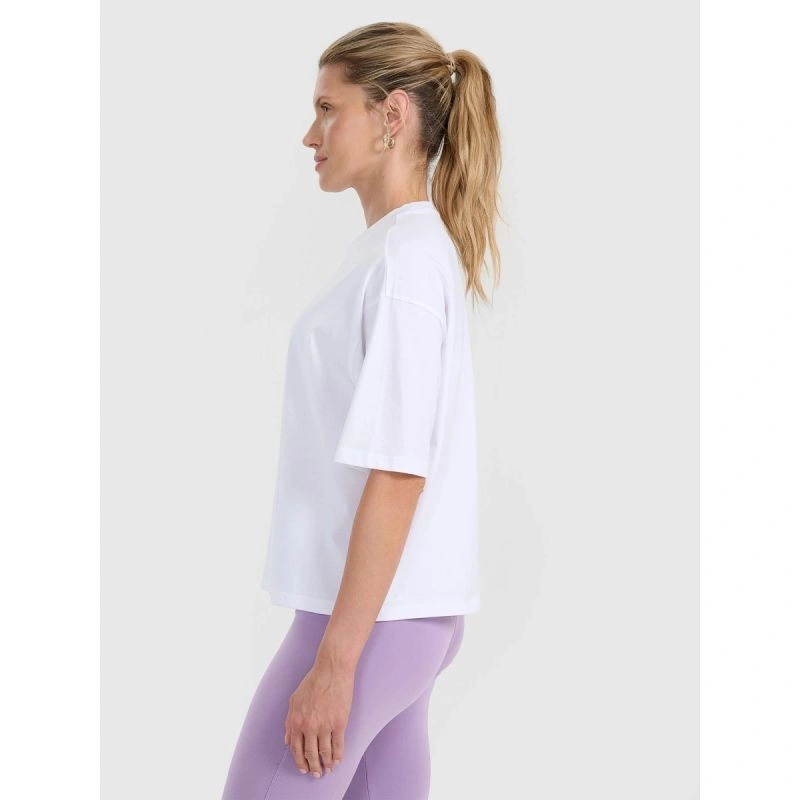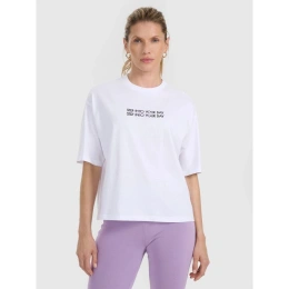 Tričko 4F oversize je skvělou volbou pro každodenní stylizaci - skvěle se hodí k džínům, šortkám nebo legínám. Měkký materiál a volný střih zajišťují pohodlí za jakýchkoli podmínek, zatímco decentní potisk mu dodává charakter. Ideální volba pro ženy, které si cení ležérnosti, minimalismu a funkčnosti.