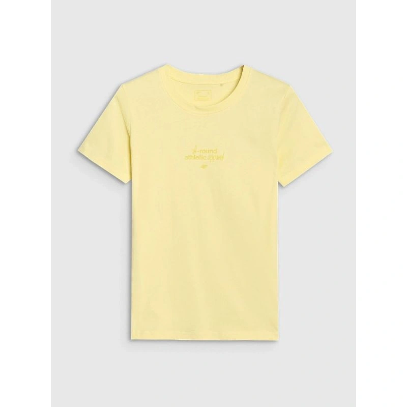 kulatý výstřih s mírným žebrováním zvyšuje odolnost provedení, zatímco nápis "All-round Athletic Apparel 4F" na přední straně dodává tričku sportovní nádech a zdůrazňuje jeho všestranné využití.