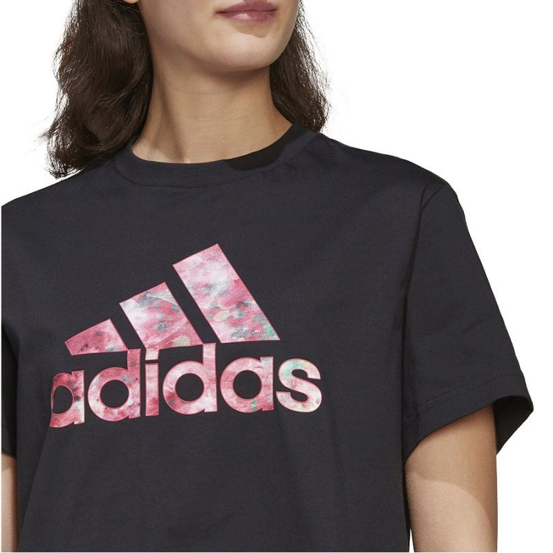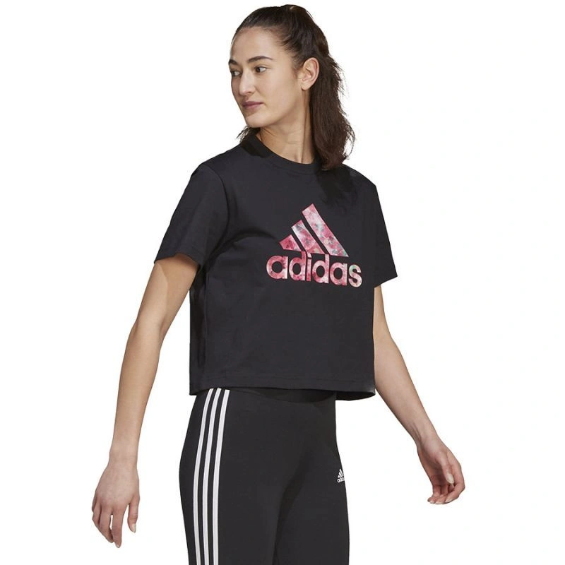 Vlastnosti: Dámské tričko adidas. Volný střih. Zaoblený výstřih. Velké kontrastní logo na přední st