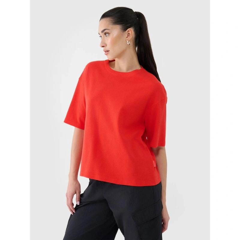 Dámské tričko4F je vyrobenoz vysoce kvalitní bavlny a vaflového úpletu a je určeno pro ženy, které si cení pohodlí, odolnosti a všestranného stylu. Regular střih poskytuje pohodlí a volnost pohybu, zatímco díky klasické délce přes boky tričko skvěle padne různým tvarům postavy a stylům.