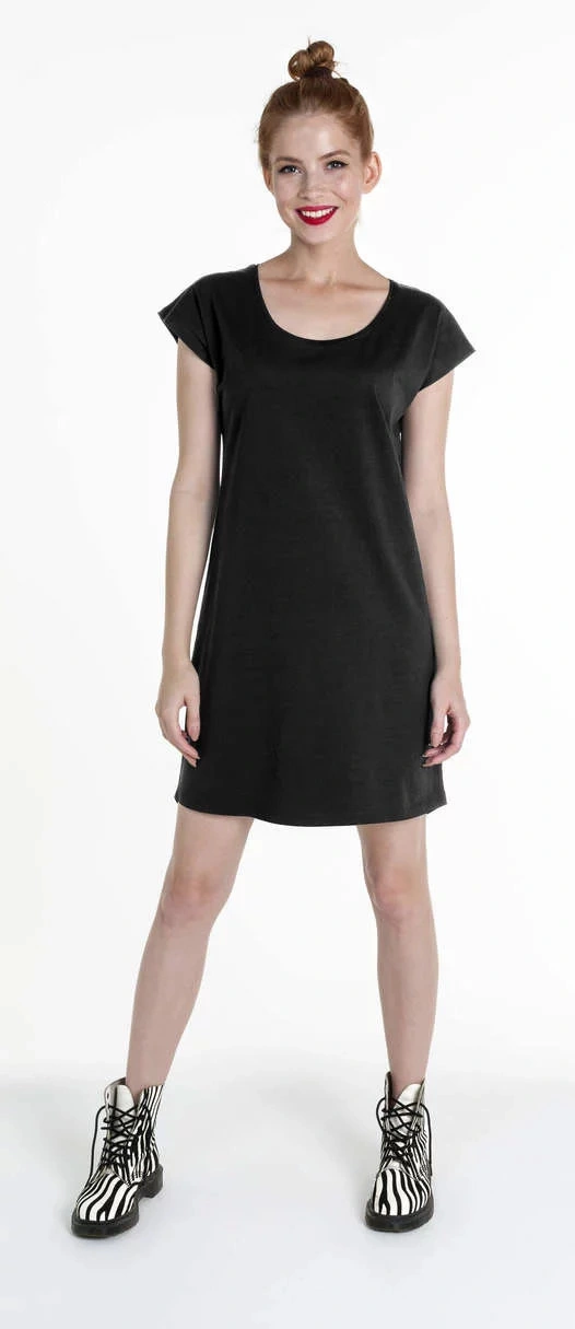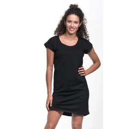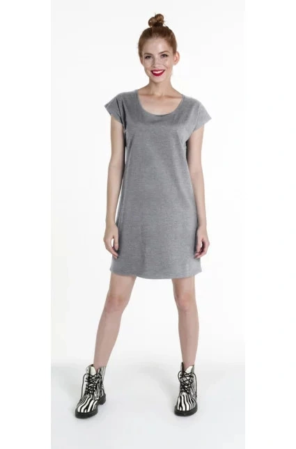 Tuniko-šaty volnějšího, pohodlného střihu. Materiál je single jersey. Ve výstřihu lemování. Šaty mají elastické, dvojité švy. Gramáž: 170g/m2.