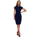 PODROBNOSTI O PRODUKTU: pouzdrové šaty z tkané látky s modelujícím prošíváním na bocích, krátké podšité rukávy, skrytý zadní zip, zadní větrací otvor, délka nad kolena.