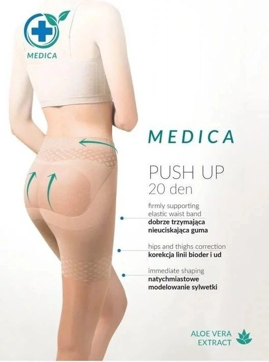 Zeštíhlující punčochové kalhoty se speciálním sedem. Stahují břicho a bedra, nadzvedávají hýždě. Změkčené extraktem z aloe vera - zvlhčují kůži a dávají pocit pohodlí. Výhody: modelování postavy, korekce linie beder a nohou, držící a netlačící guma. Hrubost 20 den.