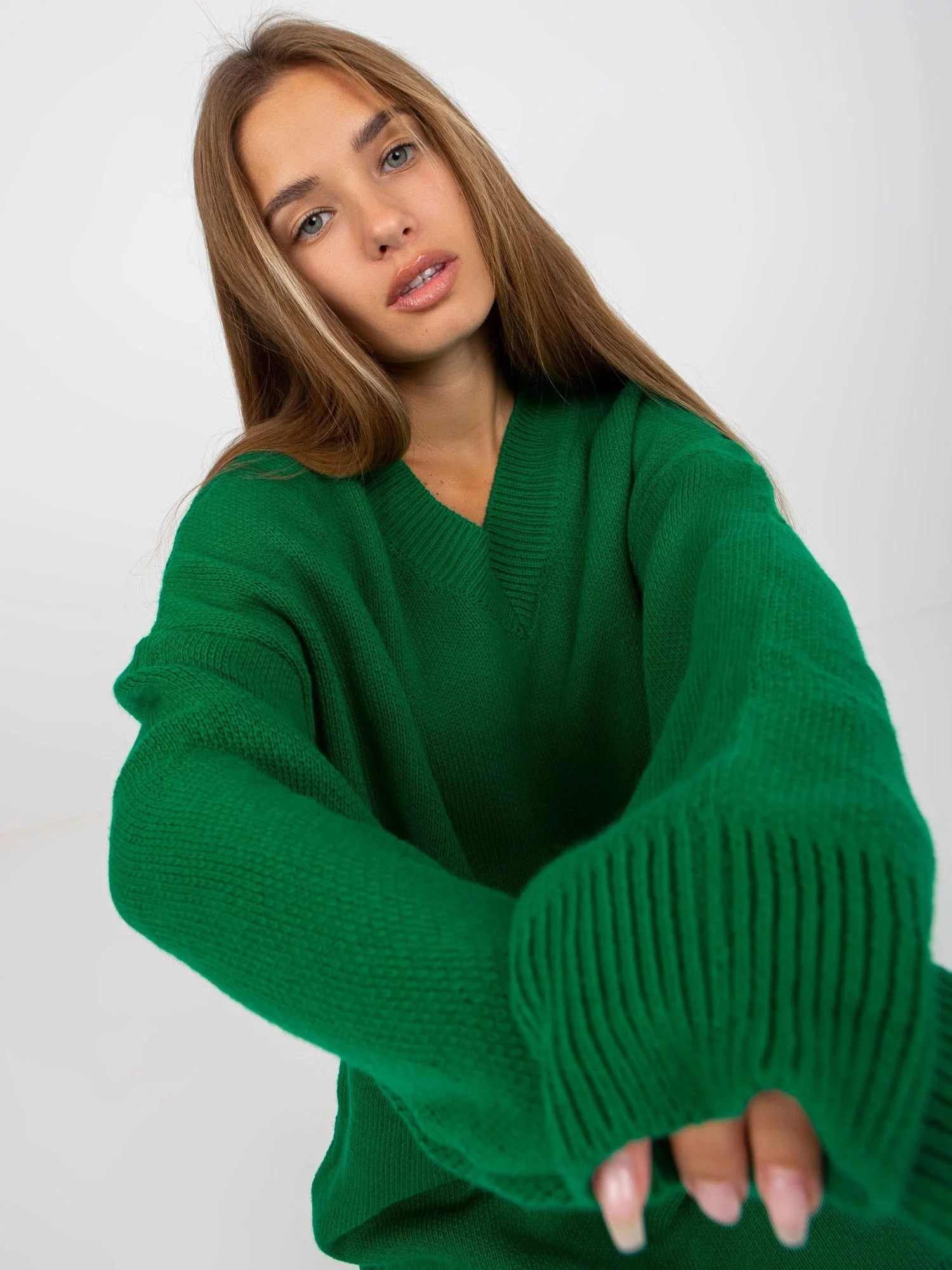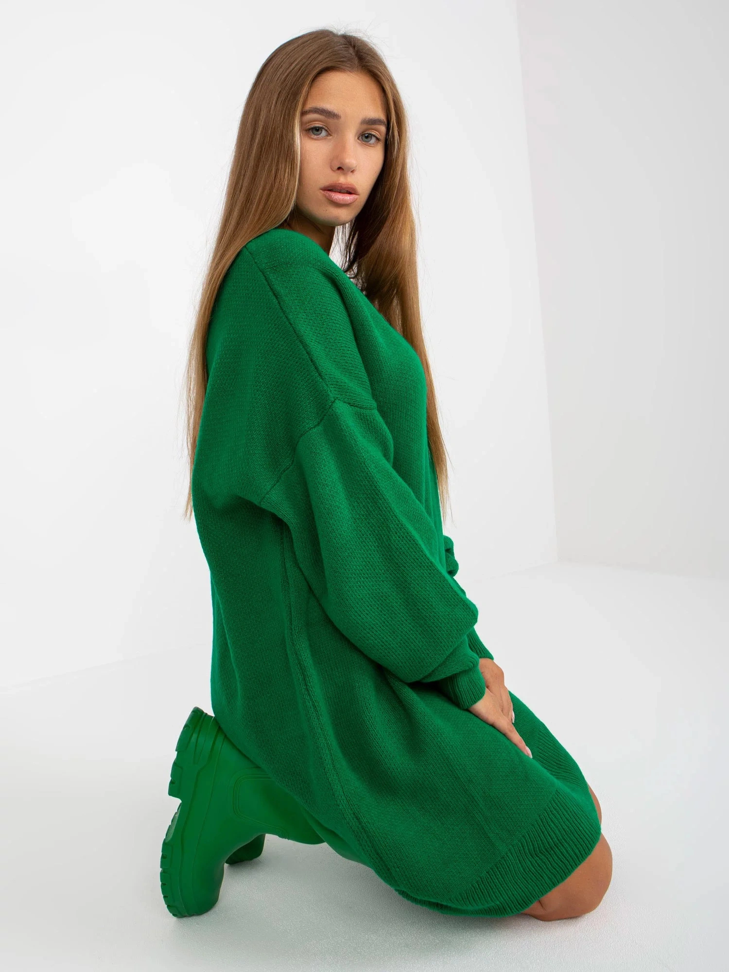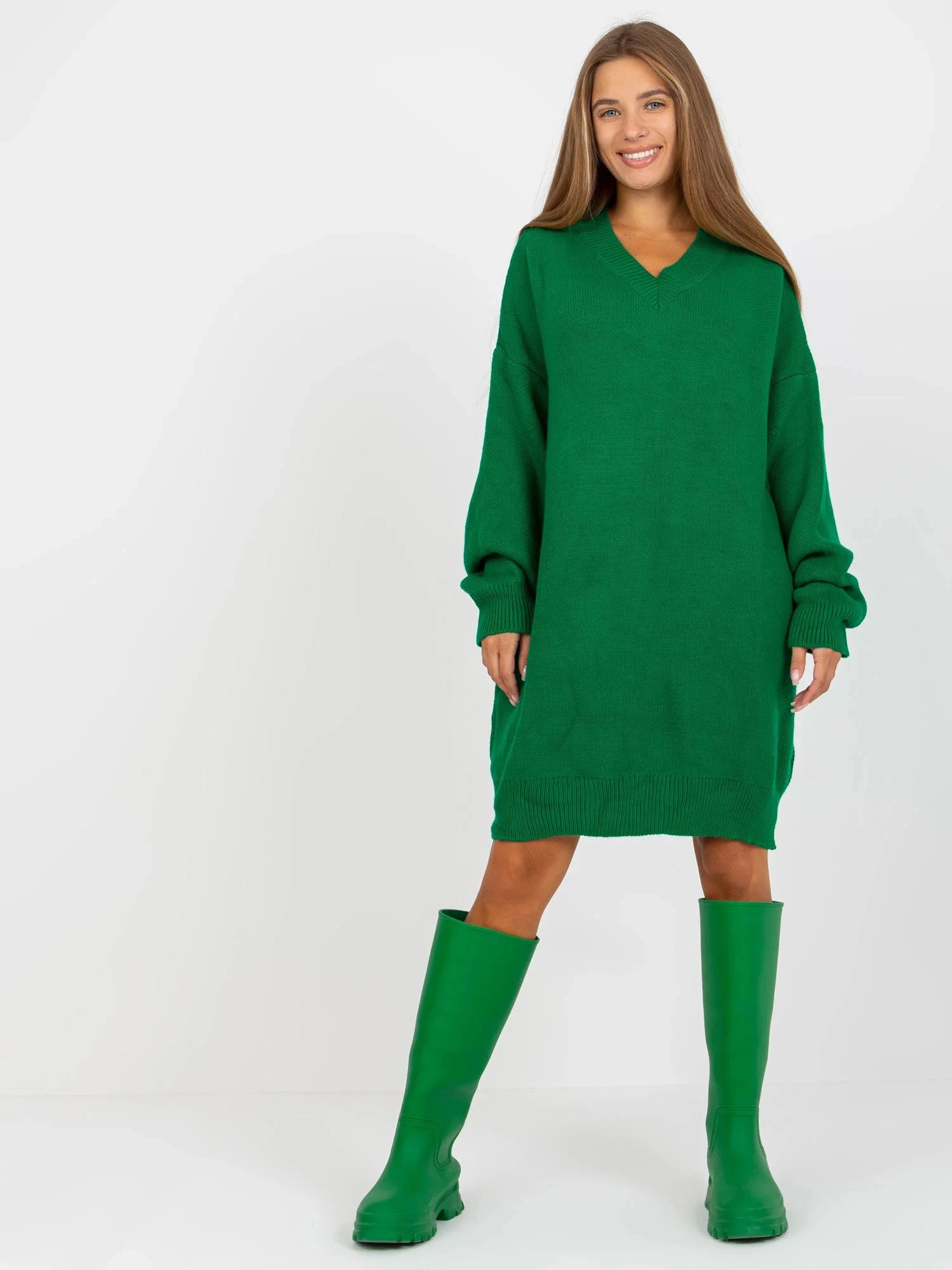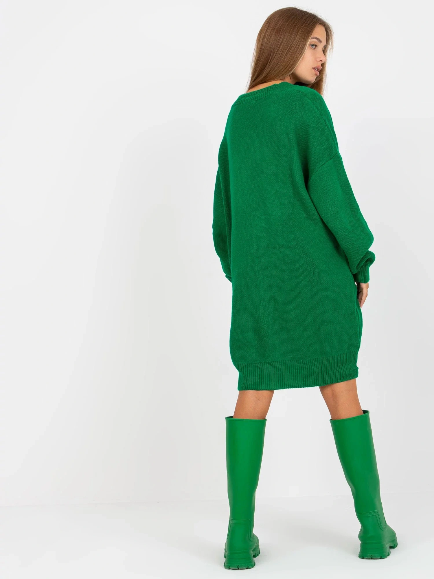 Zelené úpletové šaty s výstřihem do V značky RUE PARIS .