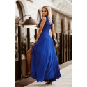 Velmi dívčí model šatů v krásných barvách. Horní díl je na ramenou svázaný krásnými mašlemi. Spodní část šatů je dlouhá s rozparkem na nohavici, velmi lehká a vzdušná. Model ideální na ples, Silvestra a další speciální události.