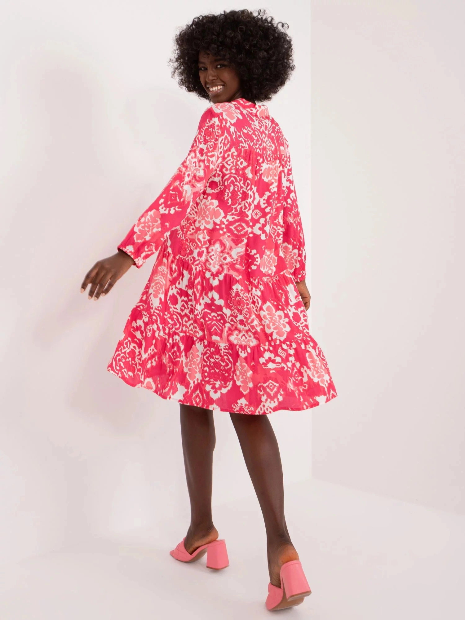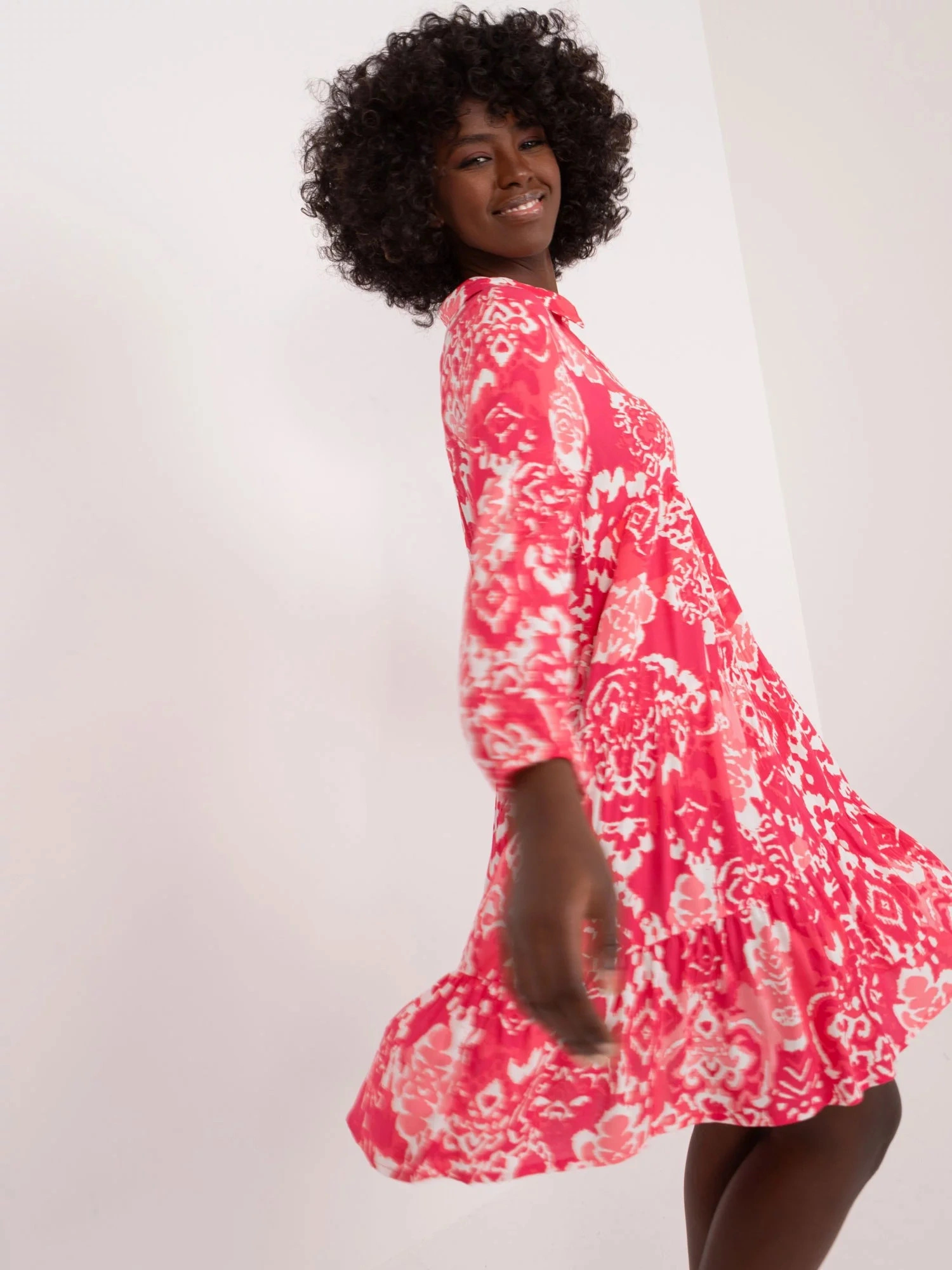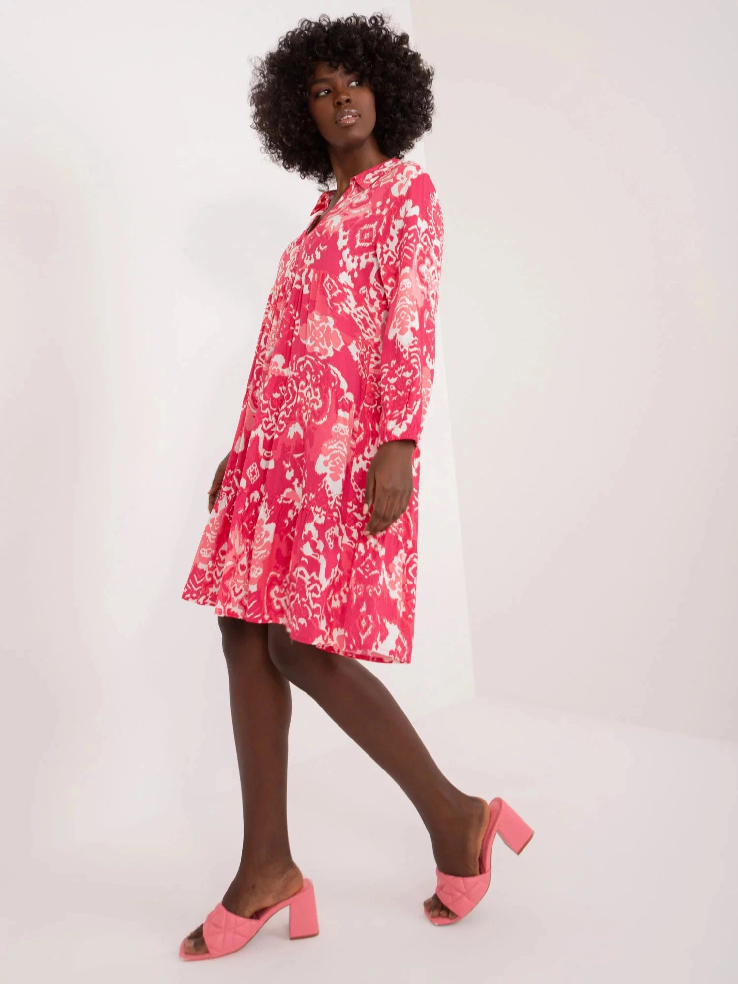 Rozměry šatů ve velikosti S měřené na plocho: šířka v podpaží - 50 cm, délka rukávu - 49 cm, celková délka - 94 cm.