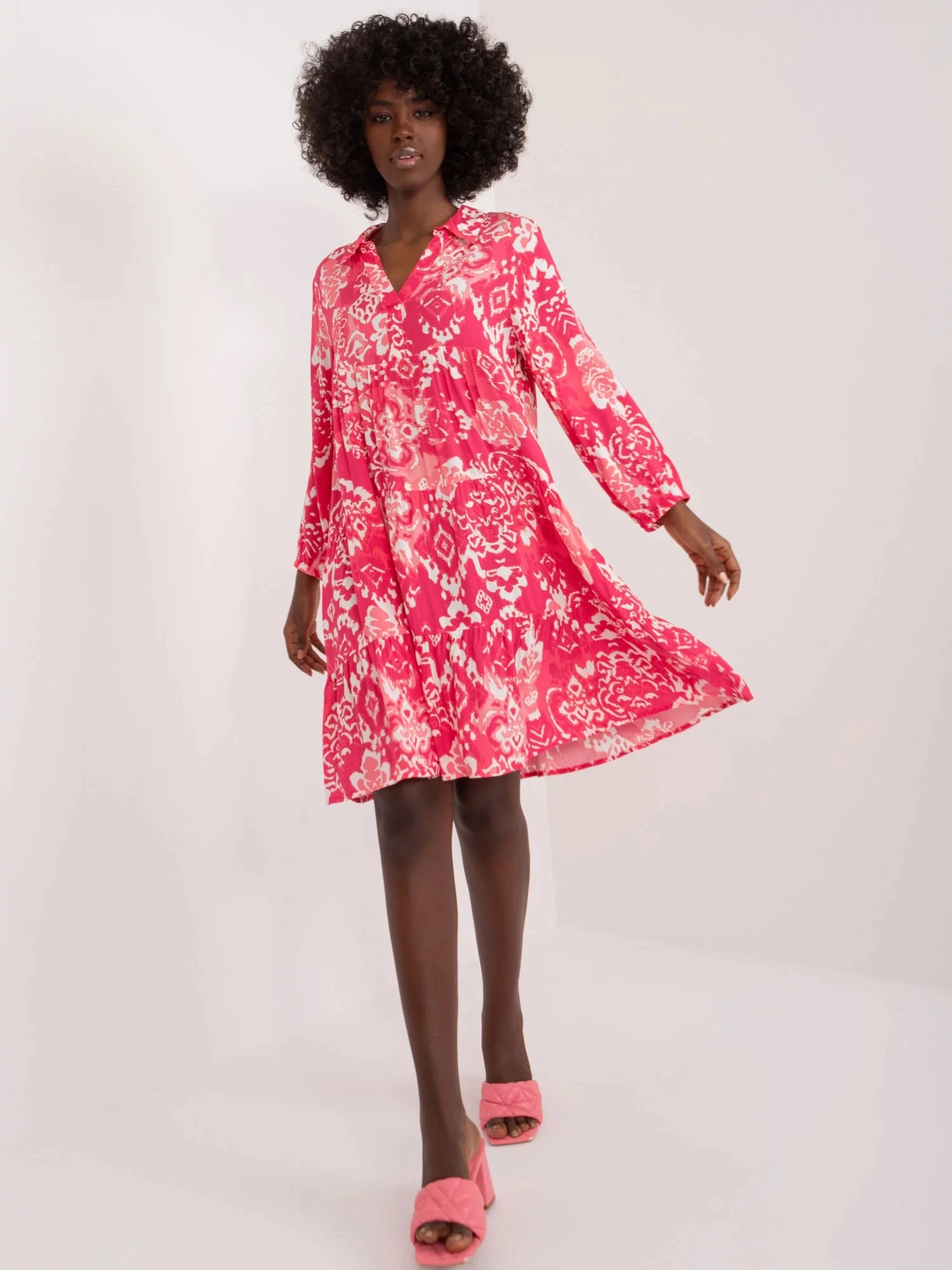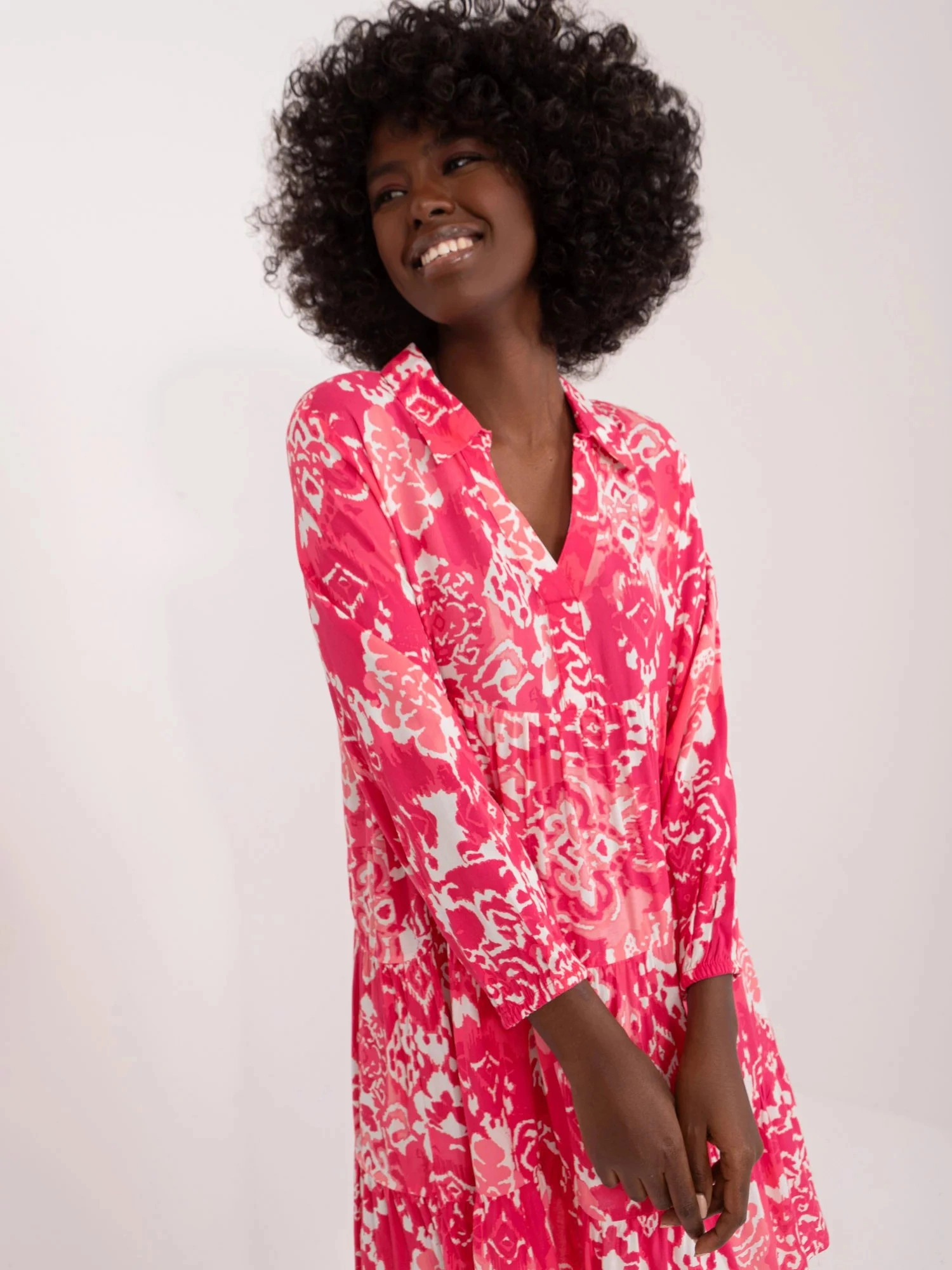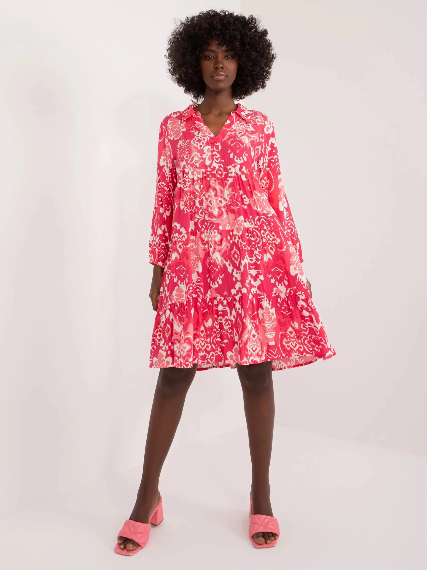 Rozměry šatů ve velikosti S měřené na plocho: šířka v podpaží - 50 cm, délka rukávu - 49 cm, celková délka - 94 cm.