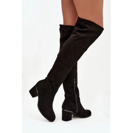 Dámské kozačky vyrobené z ekologického semiše jsou elegantní volbou pro ženy, které ocení styl a pohodlí. Dosahují za koleno a jejich přiléhavý horní díl krásně zvýrazňuje linii nohou, čímž dodává postavě štíhlý a ženský vzhled. Jemně zaoblené špičky. Model s zipem na spodní straně horní části. Osazeny na podpatku, vypadají mimořádně stylově. Tyto kozačky se skvěle hodí do podzimních a zimních stylizací – jak s přiléhavými kalhotami, tak s krátkými šaty nebo sukněmi. Při výběru velikosti, prosím, řiďte se tabulkou velikostí. Při výběru velikosti se řiďte tabulkou velikostí.