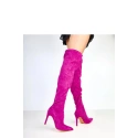 Dámské kozačky jsou elegantní model vyrobený z vysoce kvalitní ekologické semišové kůže, který se vyznačuje elegantním špičatým nosem a štíhlou linií. Vysoký střih o délce 57 cm sahá před koleno, opticky prodlužuje nohy a zdůrazňuje siluetu. Stabilní, štíhlý podpatek o výšce 10,5 cm dodává každému outfitu ženský charakter a eleganci. Boty se zapínají na praktický zip, co zaručuje pohodlí při obouvání. Vložka z textilie zajišťuje pohodlí během nošení. Model není podšitý, ideální na přechodnou sezónu a elegantní události.
