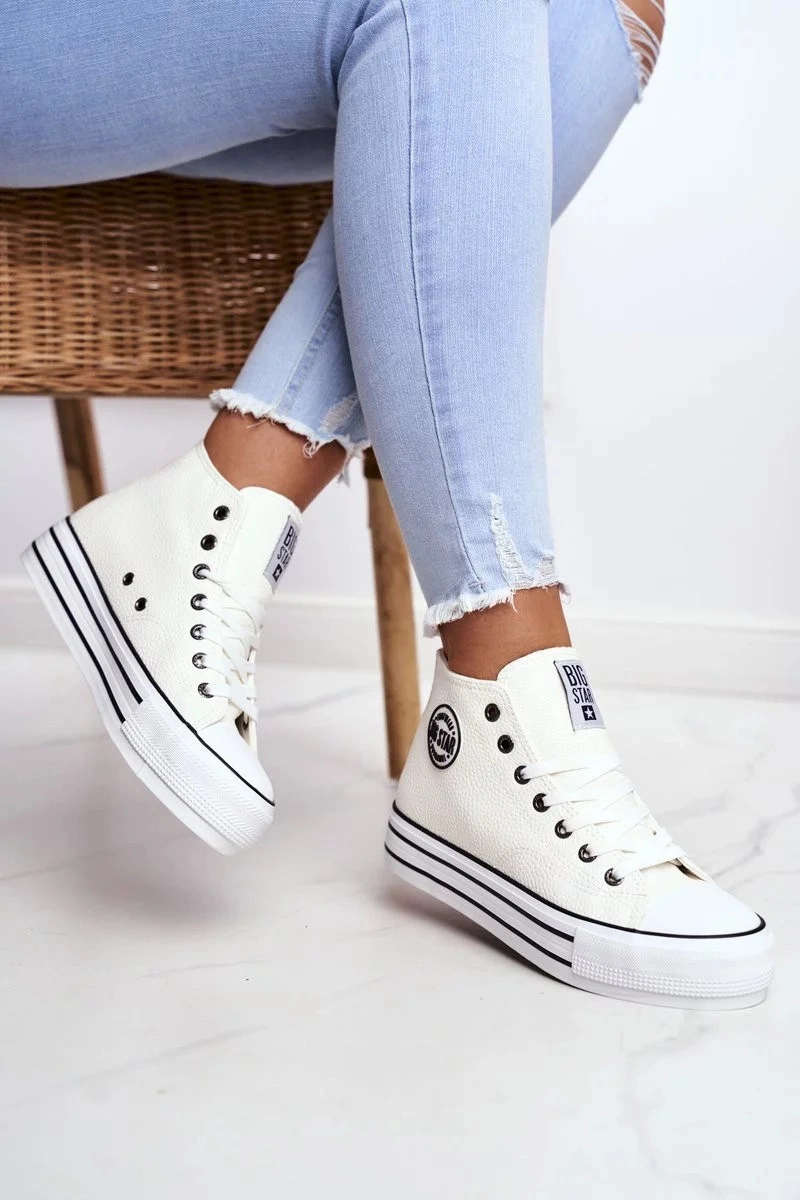 Nadčasové tenisky BIG STAR! Klasický vzor v kombinaci se silnou podrážkou je dokonalým receptem na praktické a originální boty. Vysoké tenisky, které budou vypadat úžasně s jakoukoli stylizací. Svršek je vyroben z ekologické kůže, zatímco stélka je z jemného textilního materiálu.