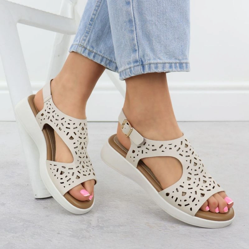 Popis Dámské vyvýšené krémové ažurové sandály Sergio Leone SK-850