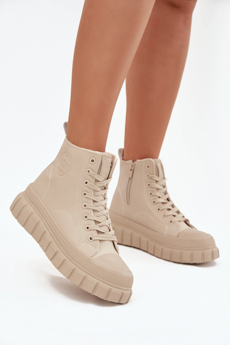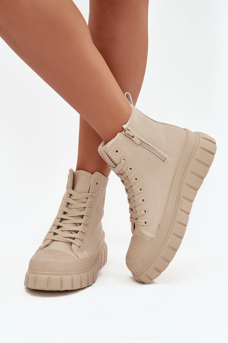 Dámské tenisky od značky Big Star kombinují módní městský styl s pohodlím pro každodenní nošení. Vyrobené z ekologické kůže, osazeny na stabilní platformě z gumového materiálu, poskytují komfort a jistý krok na jakémkoli povrchu. Model má šněrování a zip, což umožňuje snadné obouvání a perfektní přizpůsobení noze, a jemné vyhřívání uvnitř bot zajišťuje teplo v chladnějších dnech. Tenisky jsou skvělé do volnočasových outfitů, dodávají jim moderní charakter. Při výběru velikosti se řiďte tabulkou velikostí. Při výběru velikosti se řiďte tabulkou velikostí.