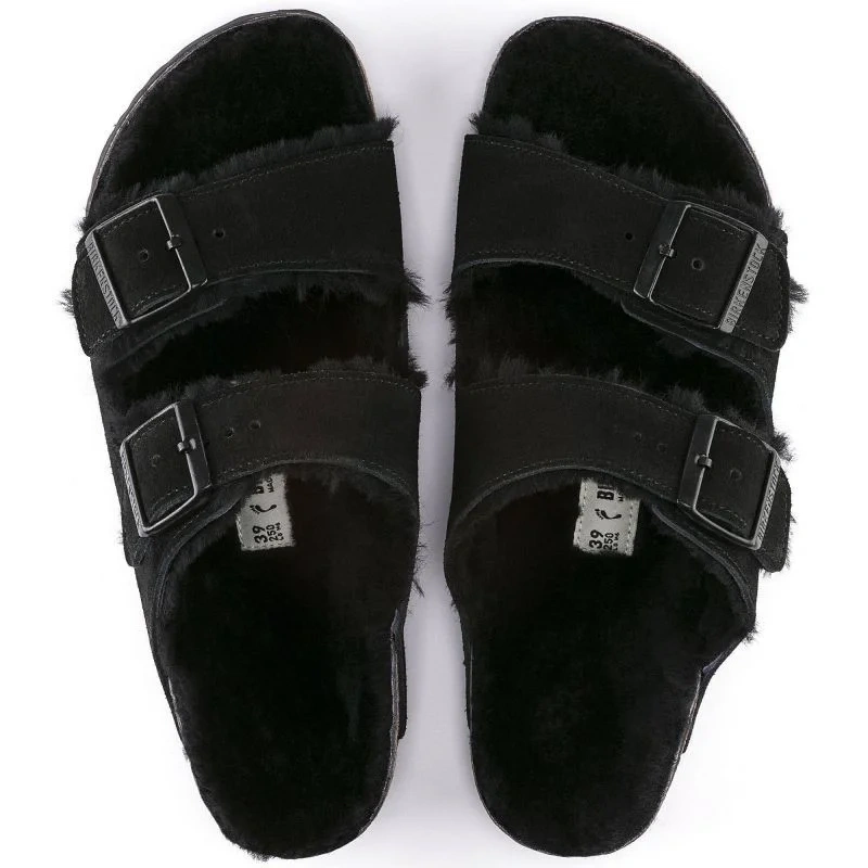 Popis Dámské zateplené žabky s ovčí vlnou Birkenstock Arizona VL Shearling Black semišová kůže regular wide (0752661) dámské