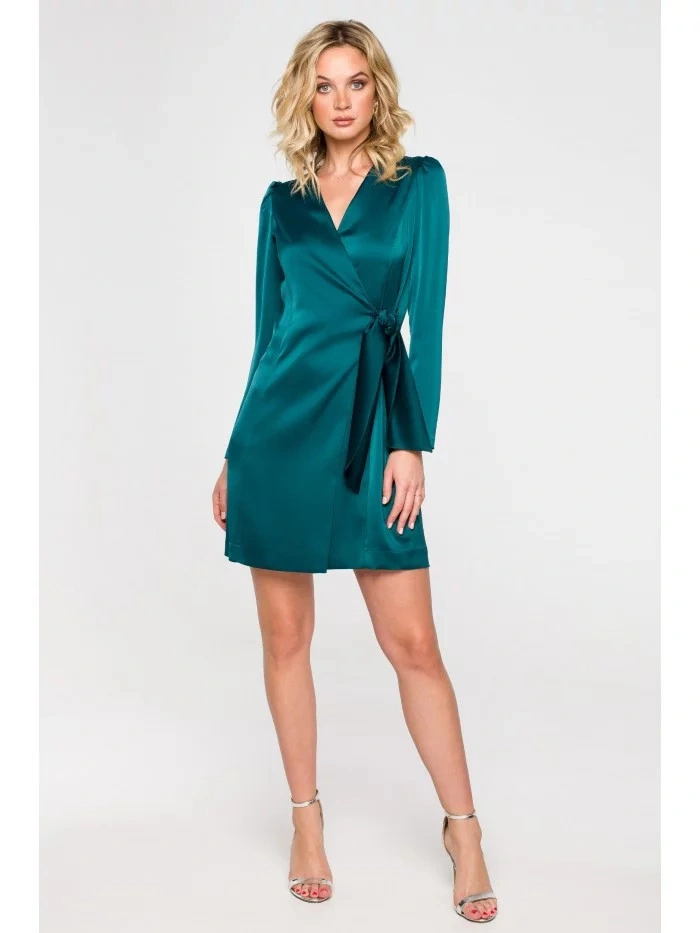 Zavinovací šaty milujeme pro jejich možnost přizpůsobit se naší postavě! Naše krásné zavinovací mini šaty střižené z elegantní a hedvábné látky si určitě zamilujete. Uvažte si ho tak, jak se vám líbí, a zazáříte jako diamant! PODROBNOSTI O PRODUKTU: tkaná látka zavinovací šaty s ozdobným detailem zavazování skrytá šňůrka na zavazování na jedné straně pro úpravu šířky v pase dlouhé úzké rukávy nabírané v horní části mini délka bez podšívky naše modelka měří 175 cm a nosí velikost S