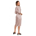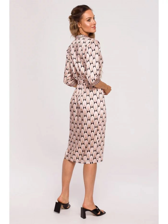 100% polyester Je elegantní, ženská a jedinečná. Tyto šaty se zavinovací přední částí jsou zakončeny detailem kravaty a jsou ušity z příjemné saténové tkaniny s geometrickým potiskem v řadě zářivých barev. INFORMACE O PRODUKTU: tkaná saténová tkanina s potiskem zavinovací šaty s límečkem vázaným na boku skrytý knoflík na jedné straně nepodšité délka pod kolena krátké rukávy zakončené manžetami na knoflíky naše modelka je vysoká 171 cm a nosí velikost S