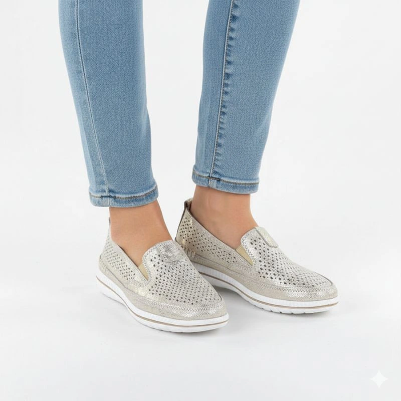 Popis Dámské zlaté prolamované kožené polobotky Jezzi 5364