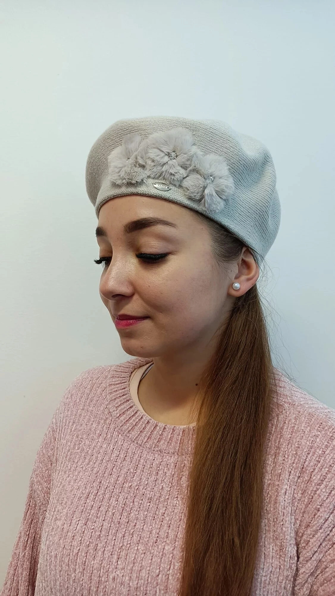 Pokrývky hlavy od společnosti Kamea. Model Aljaška. Výrobek je vyroben ze 40 % z akrylu, 25 % z viskózy, 20 % z vlny a 15 % z elastanu. Výrobek pro ženy.