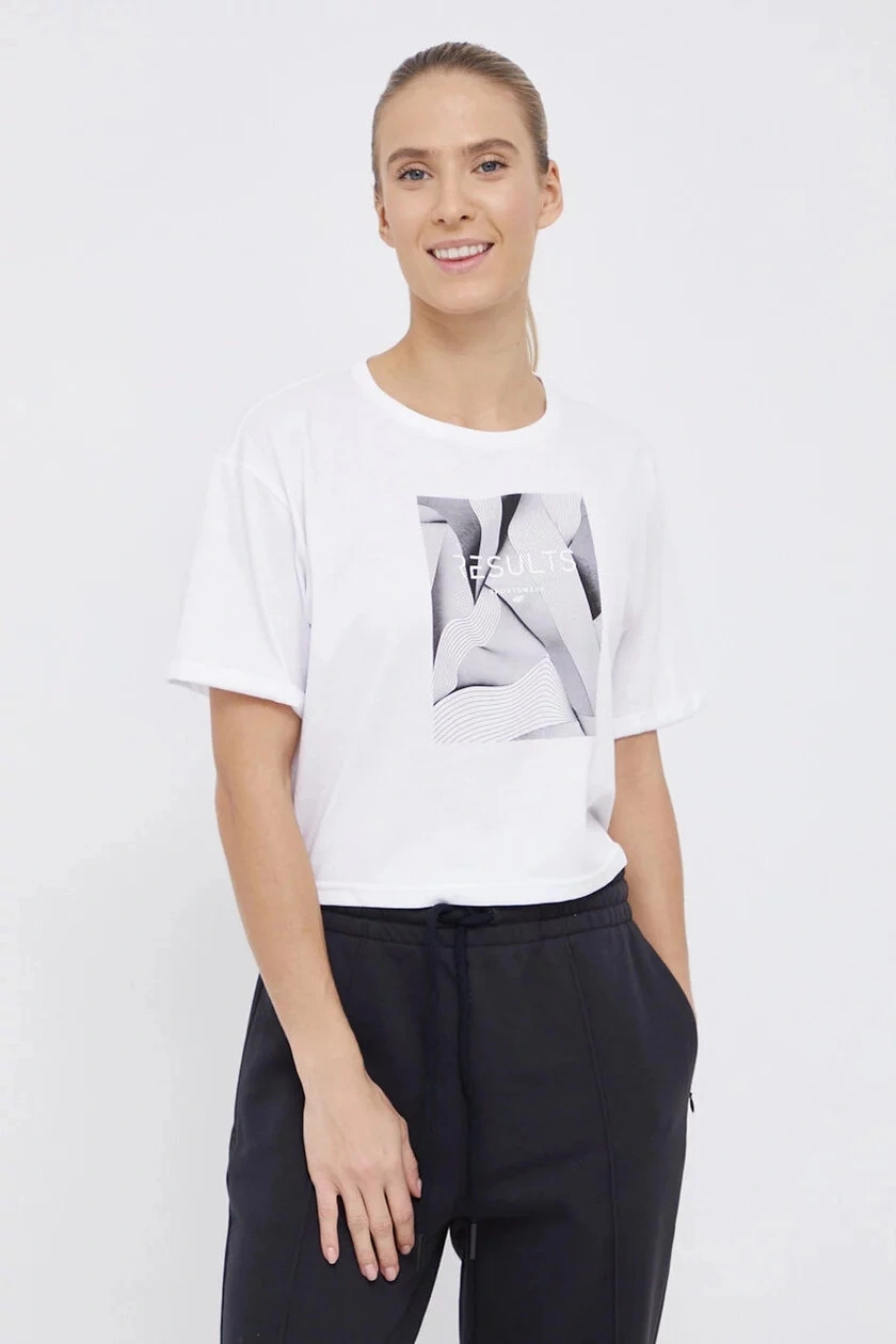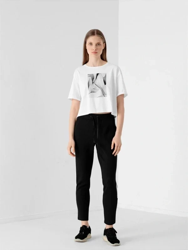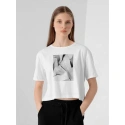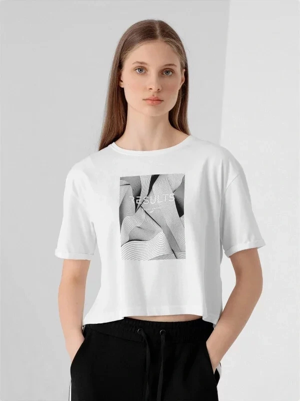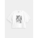 Dámský crop top s potiskem H4Z21-TSD029 10S Bílá s černou - 4F