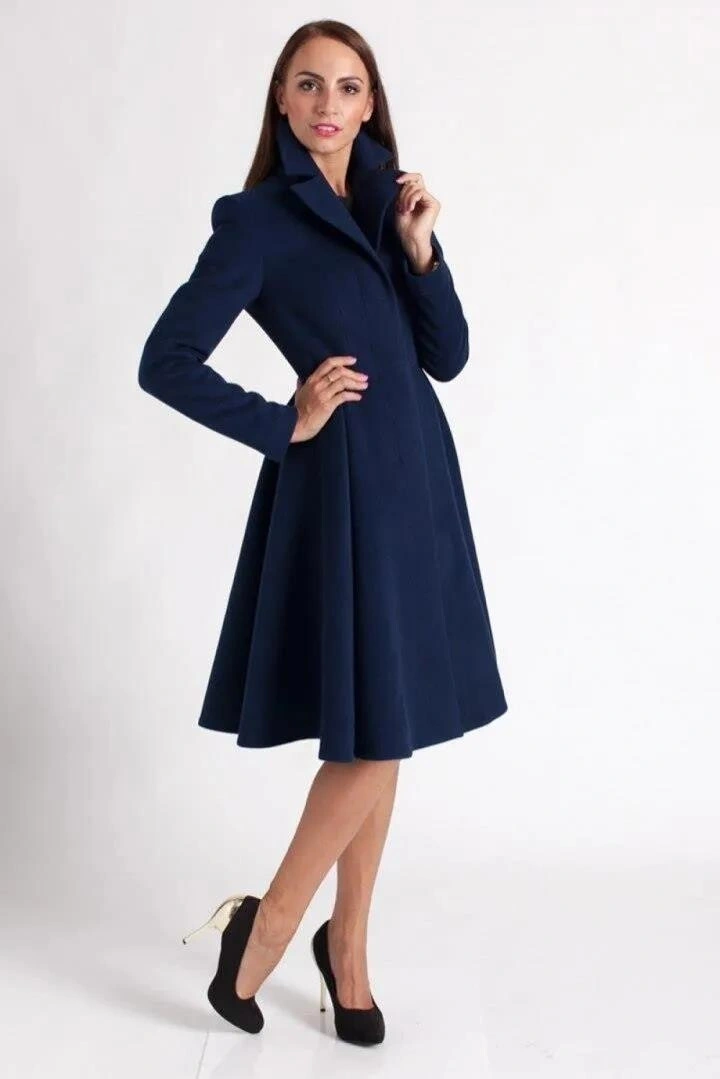 Dámský dlouhý podšitý kabát na tři velké knoflíky