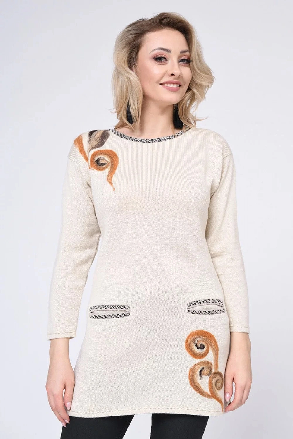 Dámský dlouhý svetr 1436R - Vitesi béžová XS