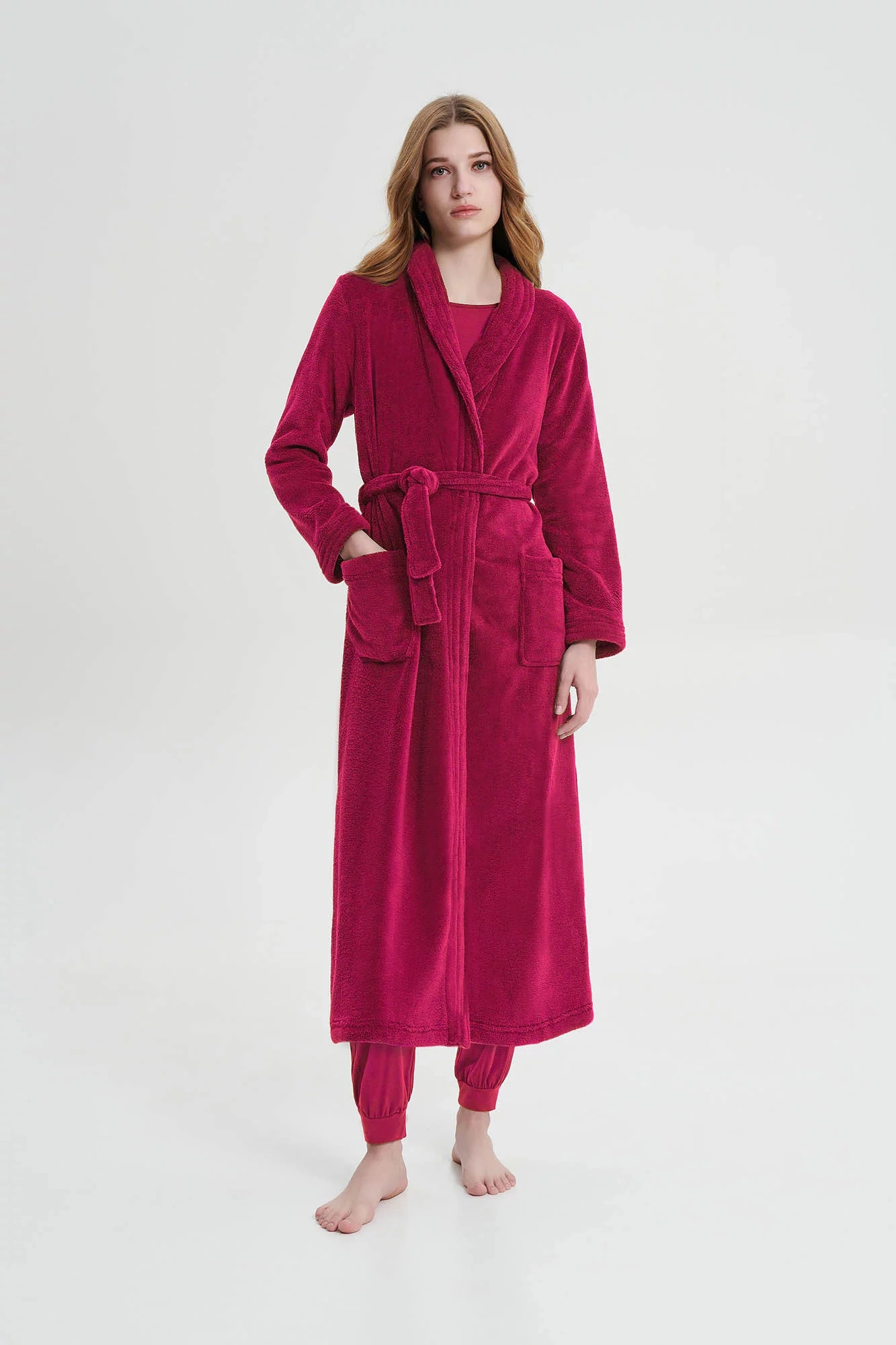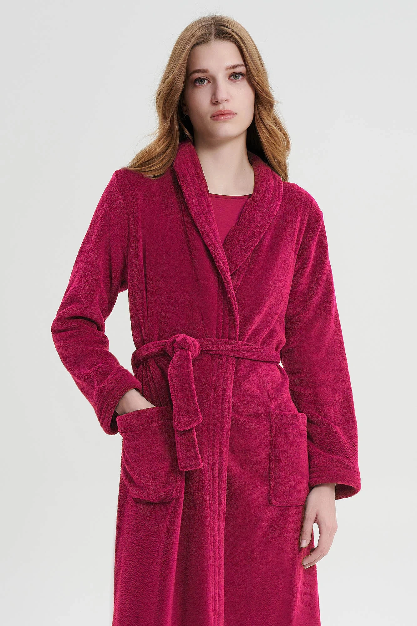 Maxi dámský župan s páskem, užitečnými bočními kapsami a měkkou klopou. Klasická, jednoduchá volba, kterou budete užívat po mnoho let.Bezvadný, jednoduchý a příjemný střih.