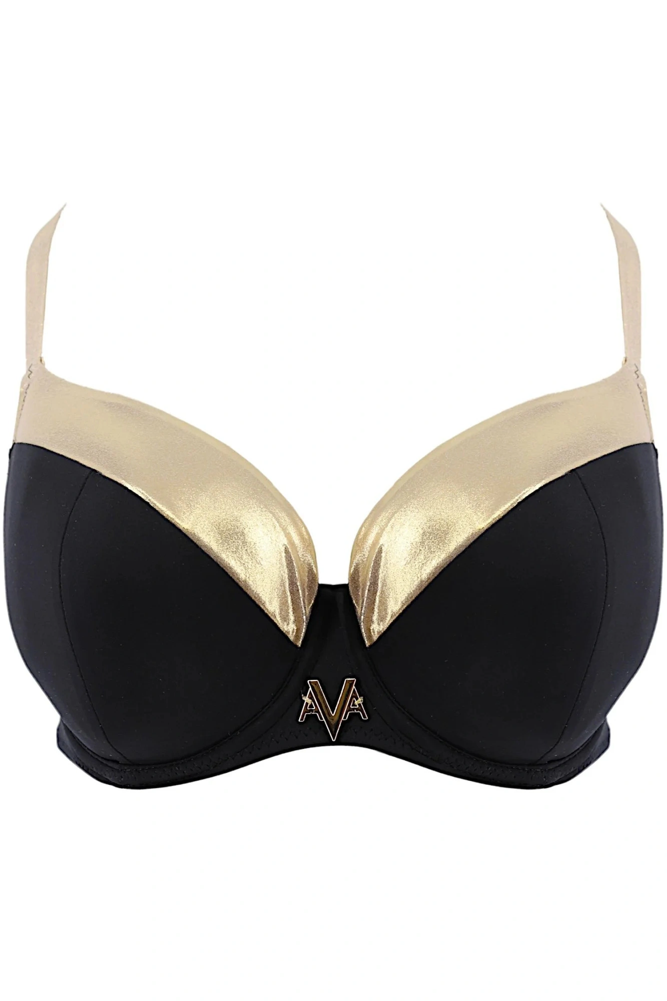 Horní díl plavek 178 black AVA - černá barva - vyztužené košíčky - nastavitelná ramínka neodnímatelná - elegantní zlatý pruh