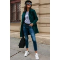 Jednořadový kabát vypasovaného střihu. Zapínání na tři knoflíky a klasický límec. Má podšívku, praktické kapsy a ozdoby v podobě knoflíků na rukávech. Polská výroba.