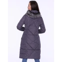 Zimní dlouhý dámský kabát s neobvyklým prošíváním je velmi ženský návrh v klasické konvenci. Nerovnoměrně uspořádané prošívání působí moderně a dokonale ladí s klasickým odstínem šedé. Kabát poskytuje vynikající tepelnou izolaci během chladných a větrných dnů.