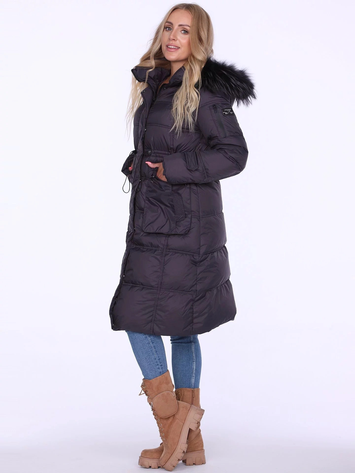 Dámský péřový zimní kabát s kapucí lemovanou přírodní kožešinou je skvělým řešením pro chladnou zimu. Výplň z kachního peří snadno vytvoří účinnou tepelnou bariéru a zahřeje vás již při prvním nošení. Kvintesencí výzdoby je lemování kapuce tmavě šedou kožešinou, která dokonale ladí s barvou svrchní látky.