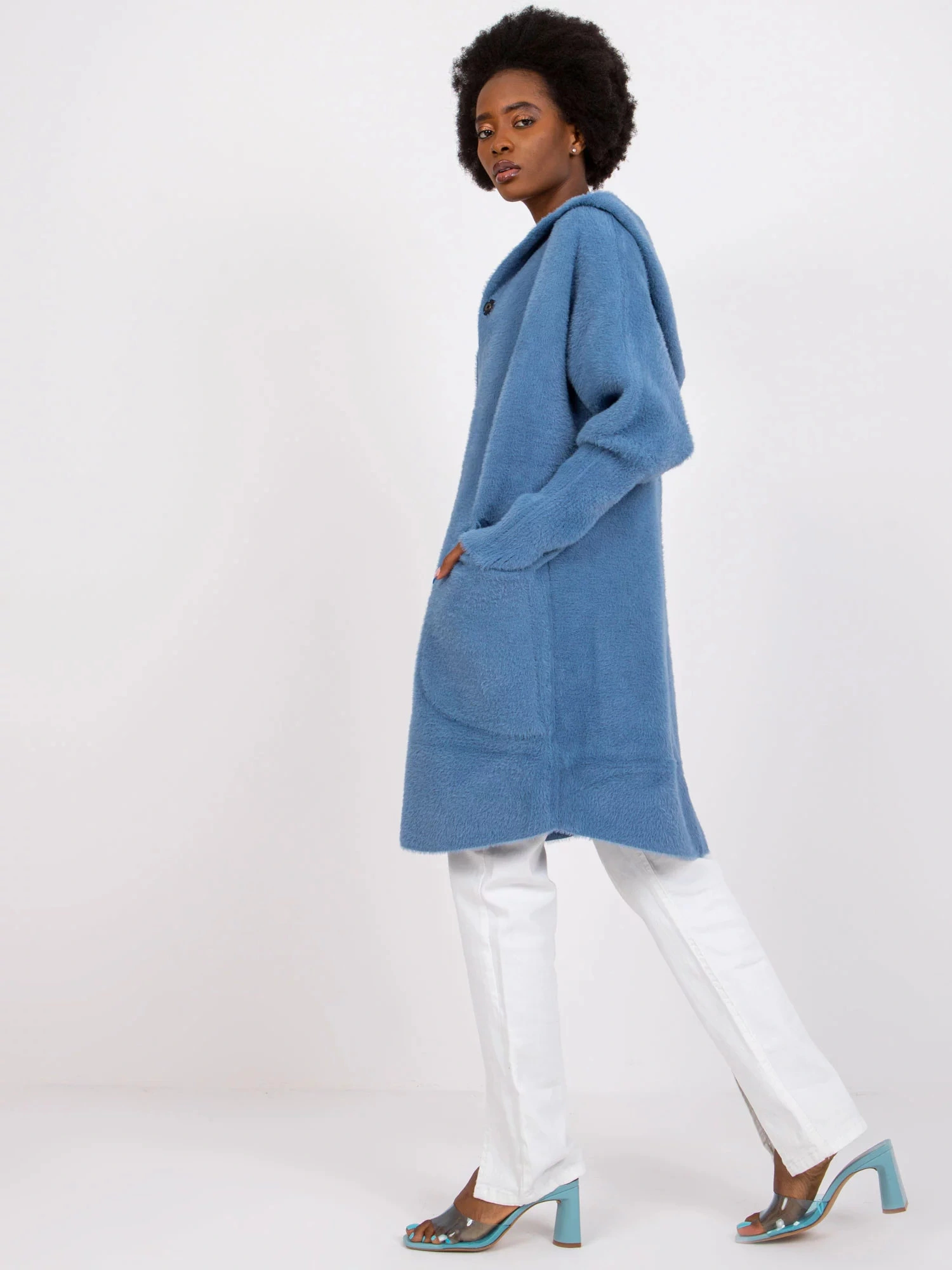 složení látky: 38,4 % vlna; 23,5 % polyester; 15,3 % angora; 22,8 % viskóza