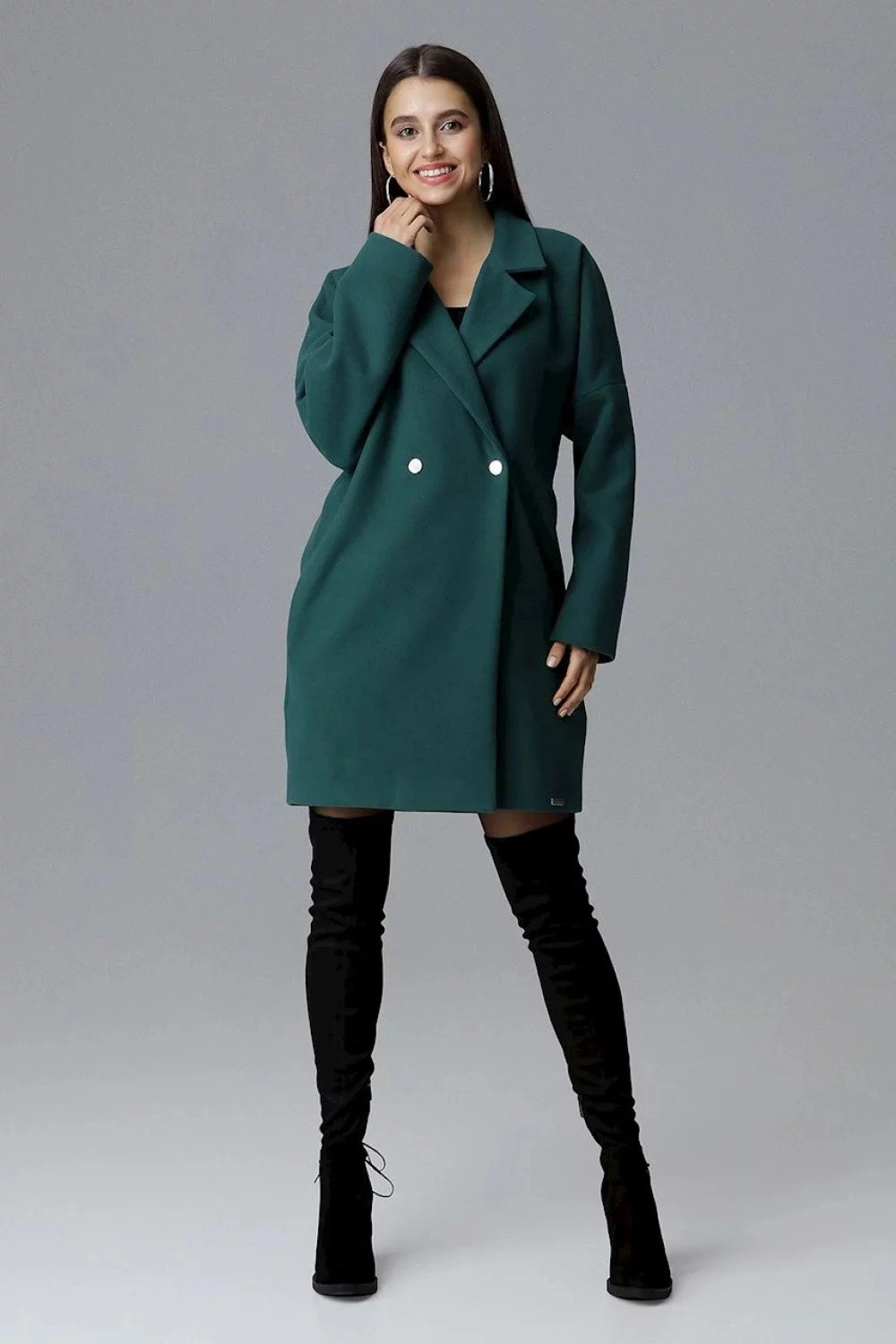 Dámský kabát / plášť M625 - Figl tmavě zelená 40/42