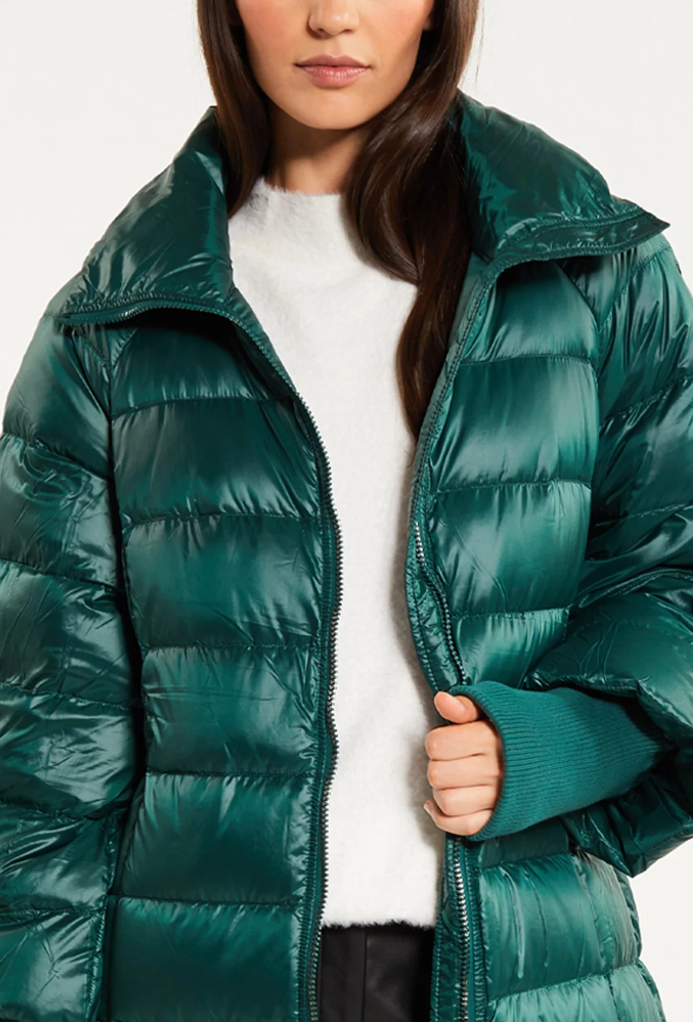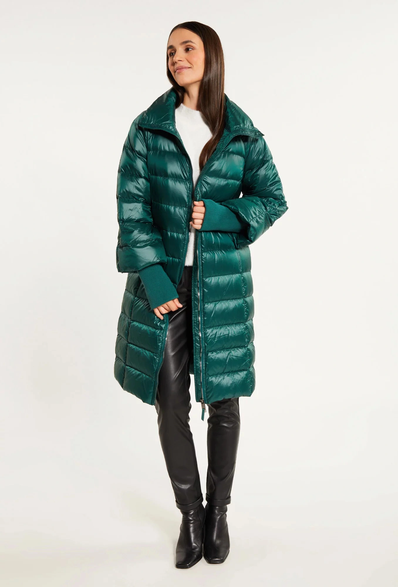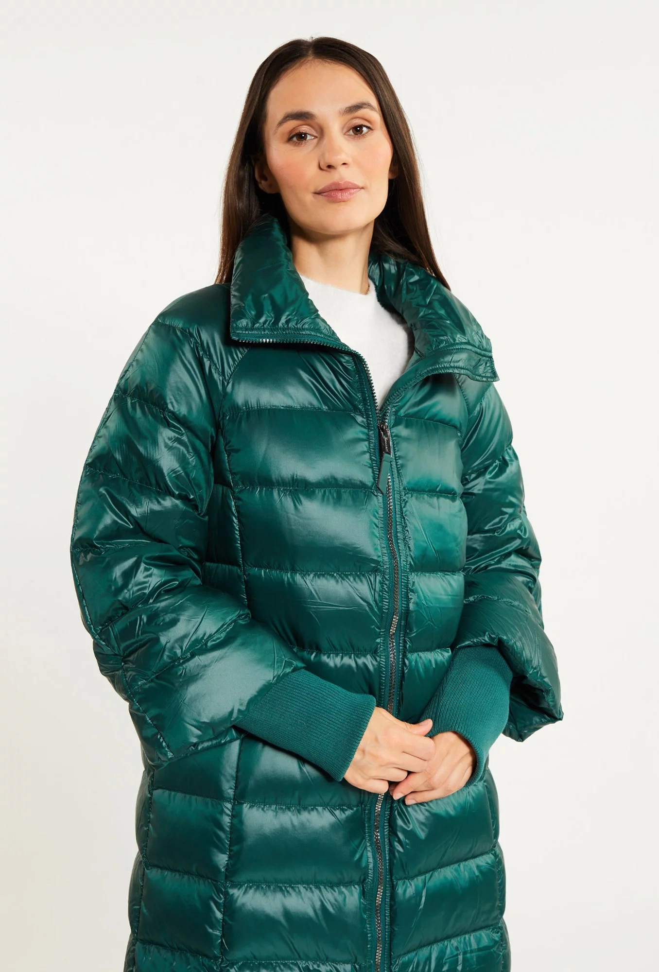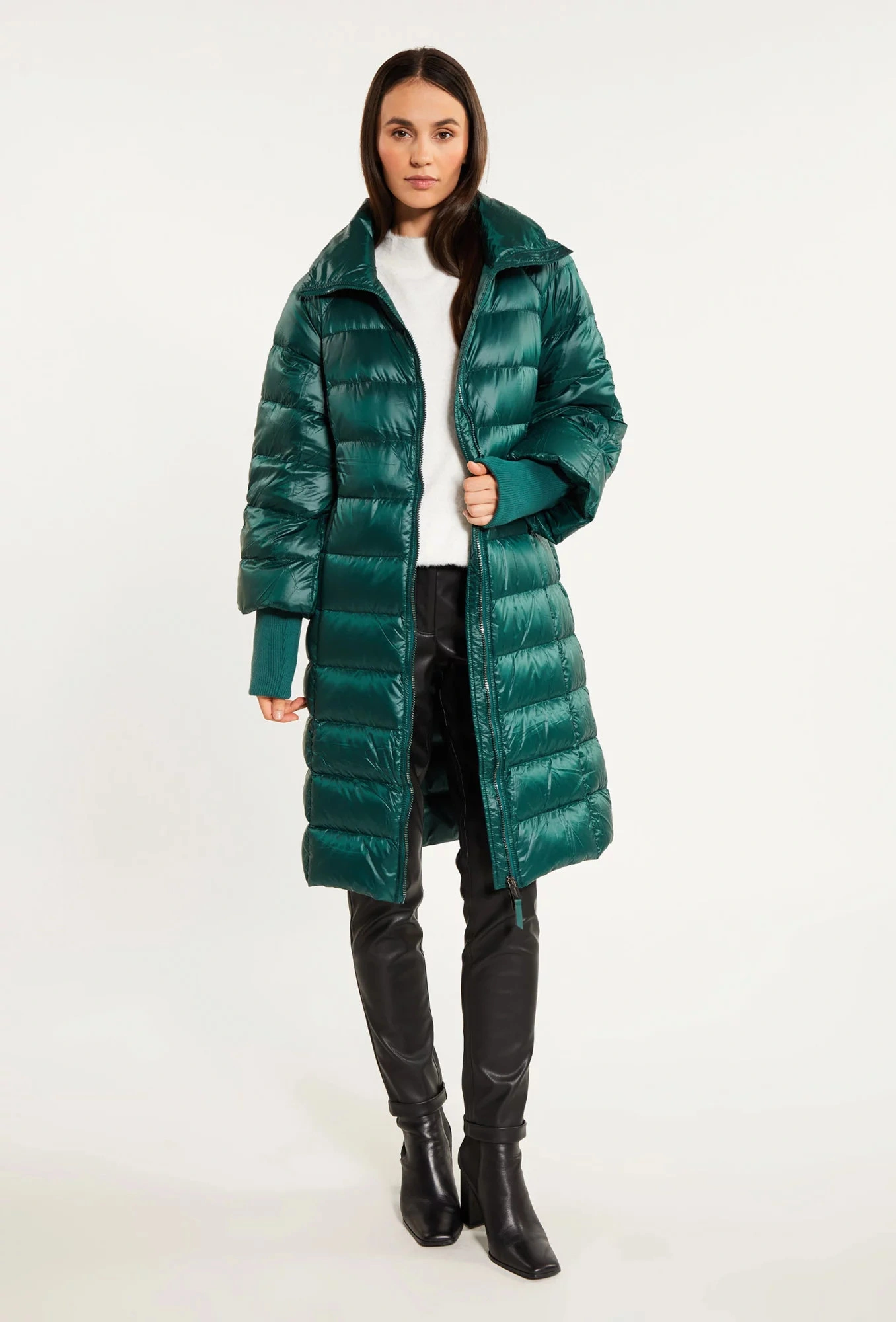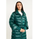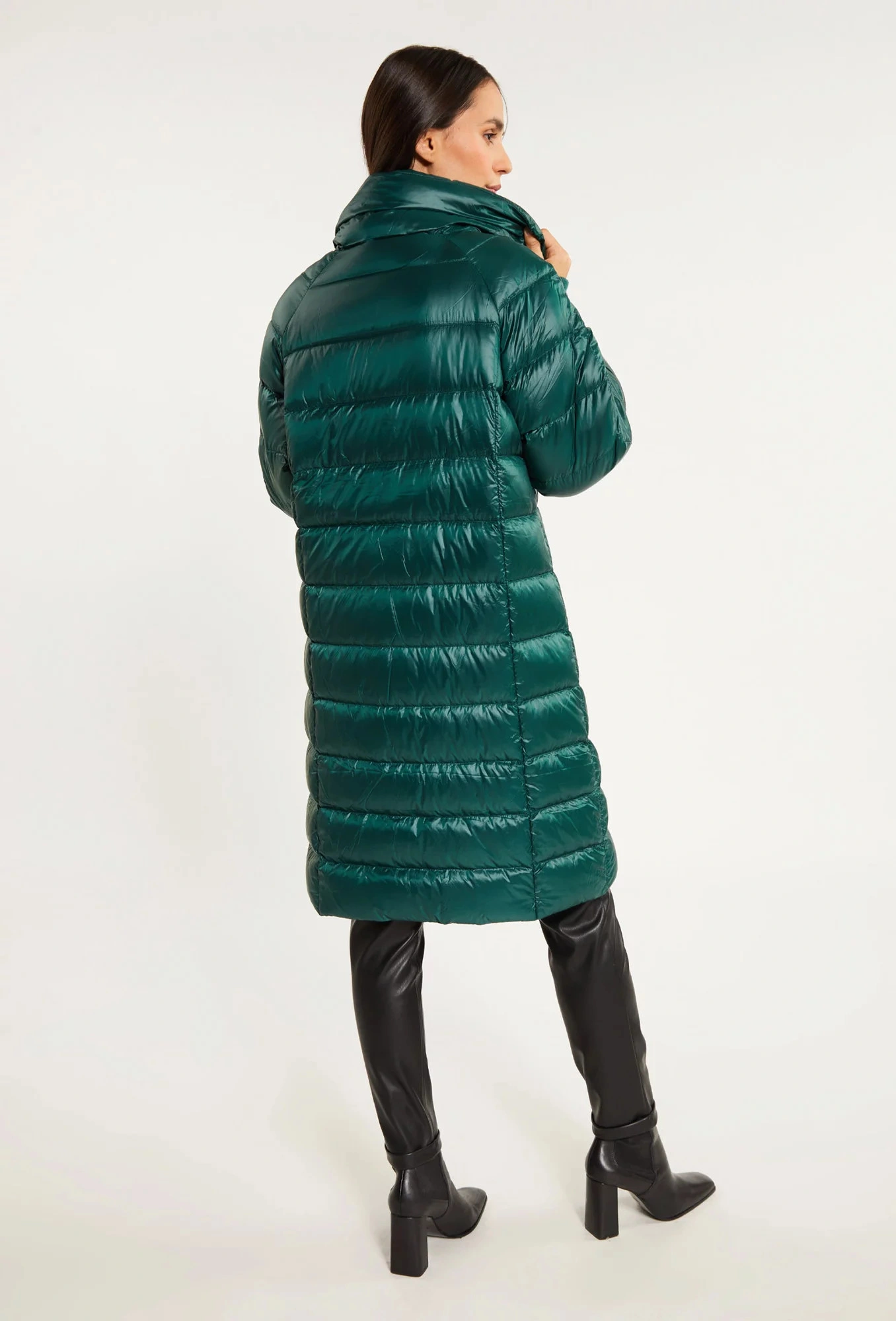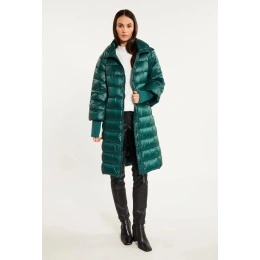 Dlouhý dámský kabát s prošíváním. Kabát s dlouhými rukávy s lemem na koncích a kapsami se zipem na bocích. Tento model bude jistě fungovat i v chladnějších dnech. Modelka na obrázku je 177 cm vysoká a má velikost 36.