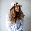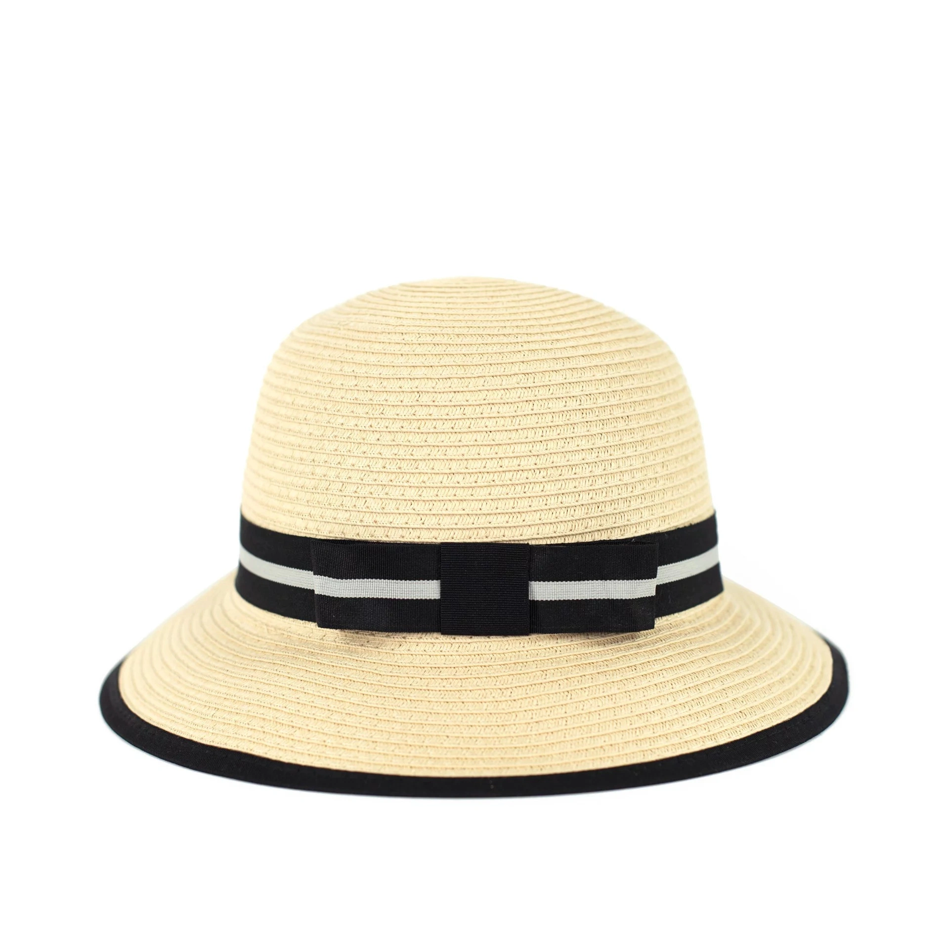 Krásně tvarovaný dámský letní klobouk značky Art Of Polo ve světle béžové barvě s černým okrajem. KšVíce