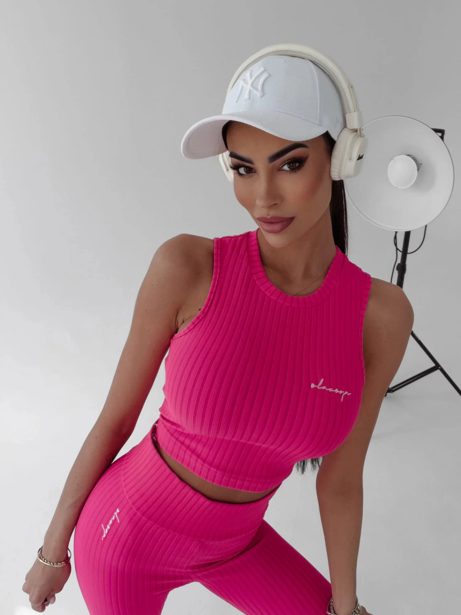 - tepláková souprava úzkého střihu s žebrovaným zakončením a nízkou strečem.,
